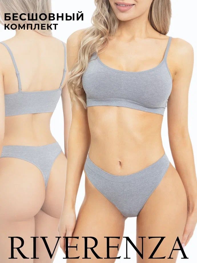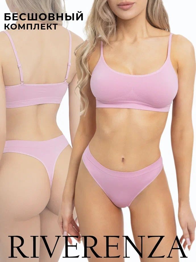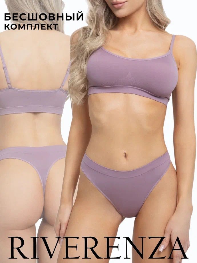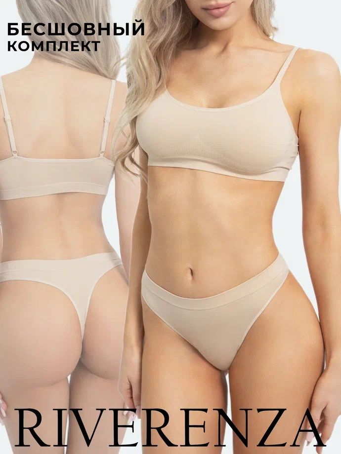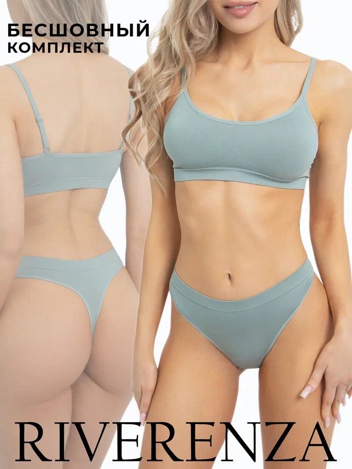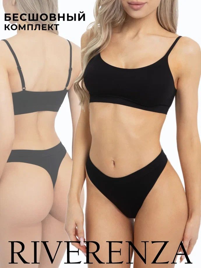 Состав: 90% полиамид, 10% эластан. Бесшовный комлект нижнего белья, топ + стринги
