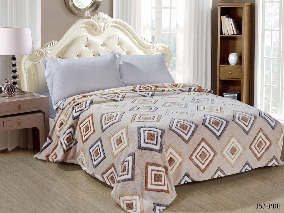 Плед CL HOME "BAMBOO" двуспальный 180*200 микрофибра 100% в атласной ленте, 180/153-pbe/LA, Геометрия, Бежевый