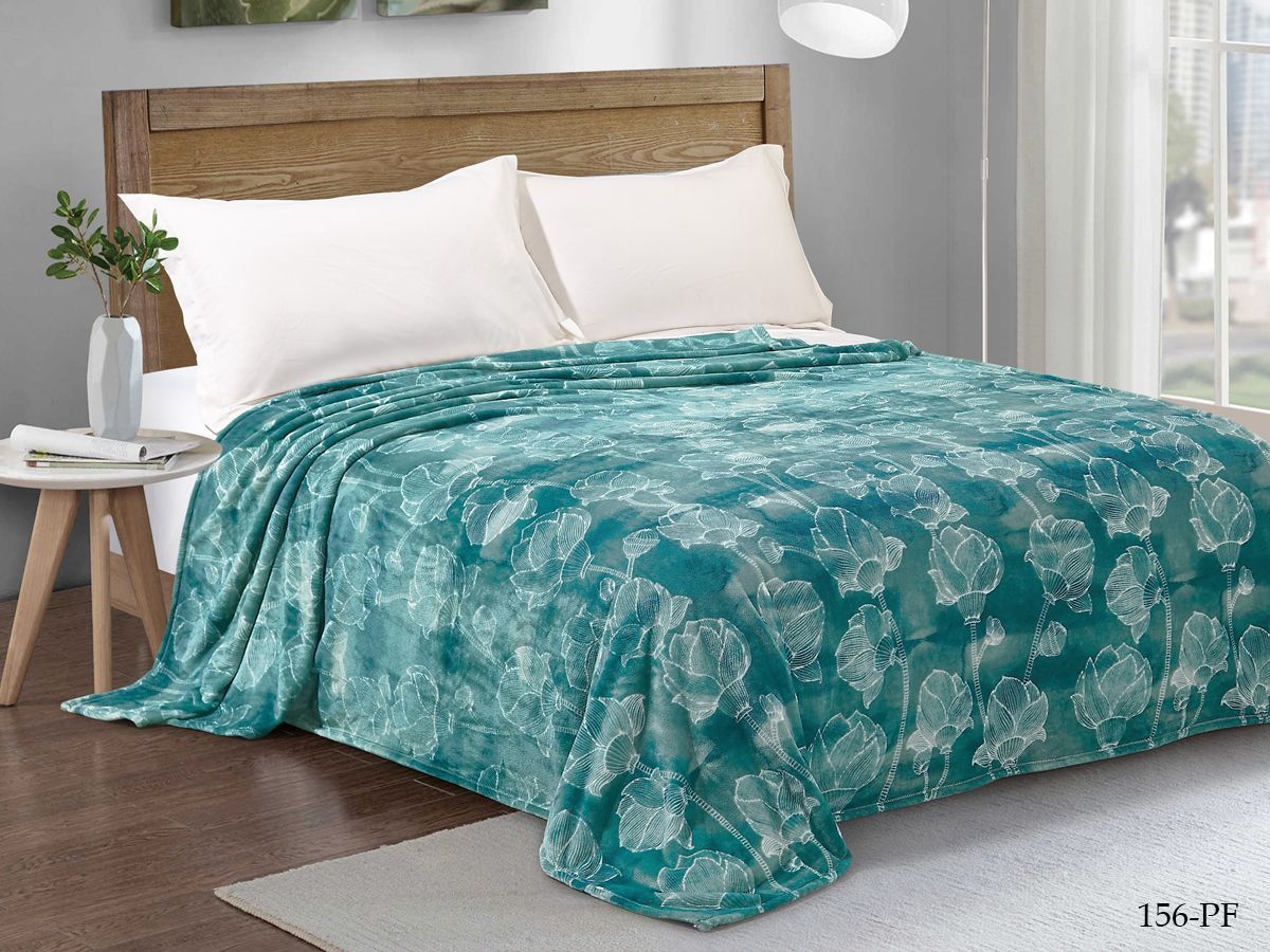 Плед Cleo "California" велсофт двуспальный 180*200, 180/156-pf, Цветы, Зеленый