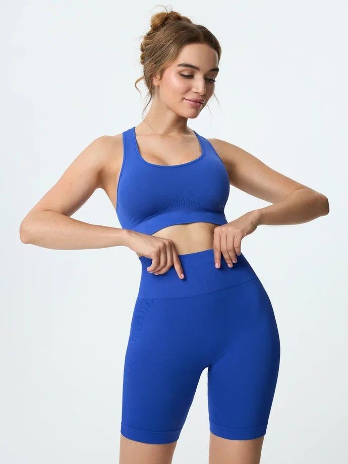 Состав: 90% полиамид;10% эластан.Бесшовные шорты высокой посадки из тянущегося материала,хлопковая ластовица