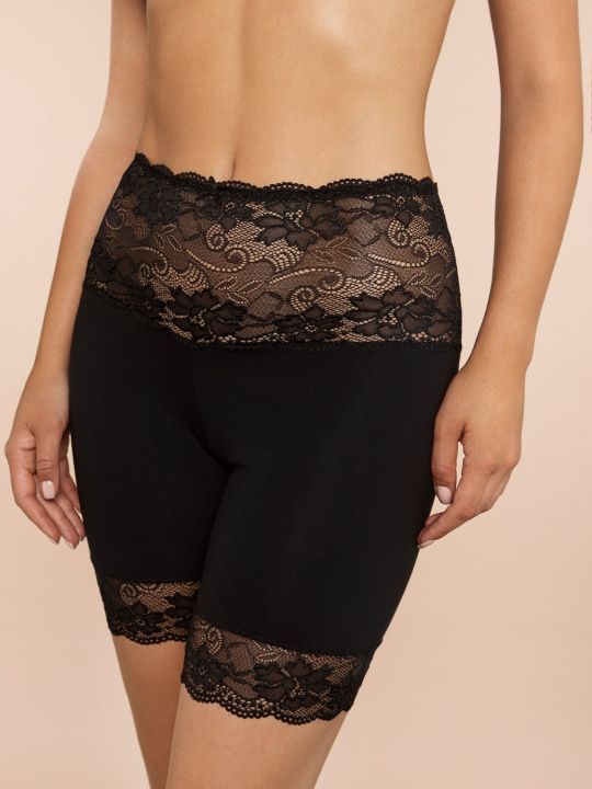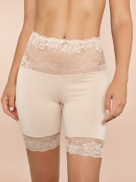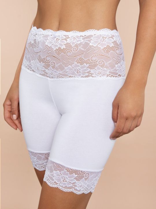 Состав: 60% хлопок, 35% полиамид, 5% эластан. Трусы панталоны высокой посадки из хлопка с кружевом