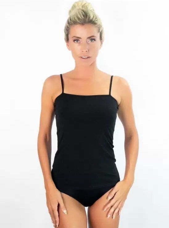 Состав: 95% хлопок, 5% эластан. Хлопковая майка топ на тонких регулируемых бретелях