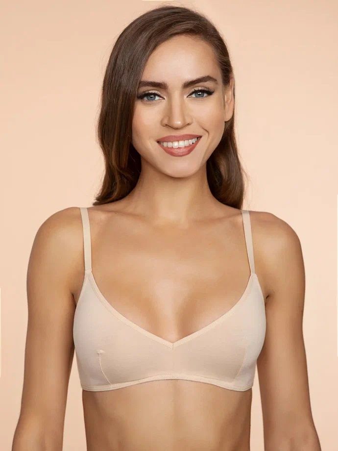 Состав: 95% хлопок, 5% эластан. Хлопковый бюстгальтер с мягкими чашками без косточек.