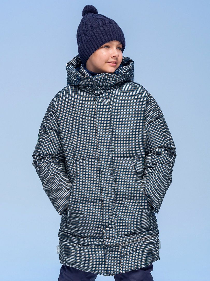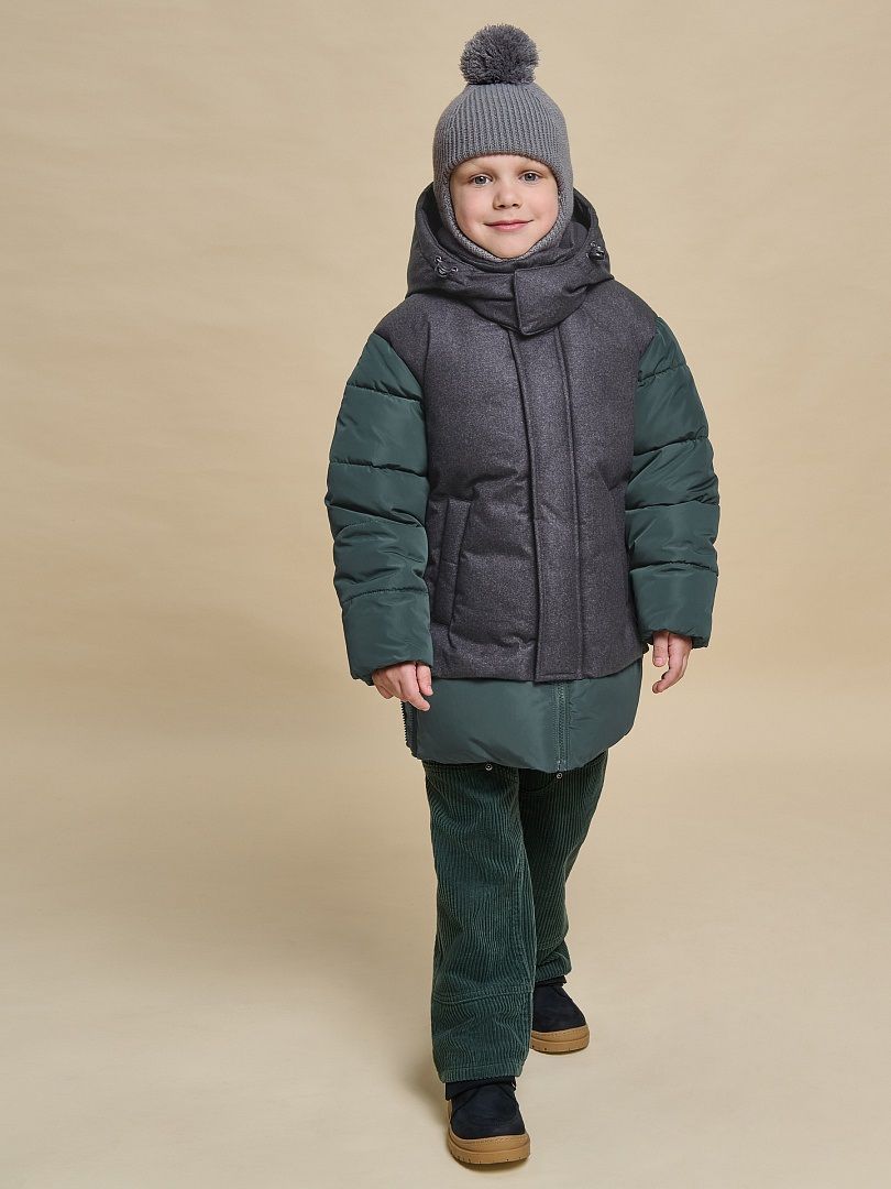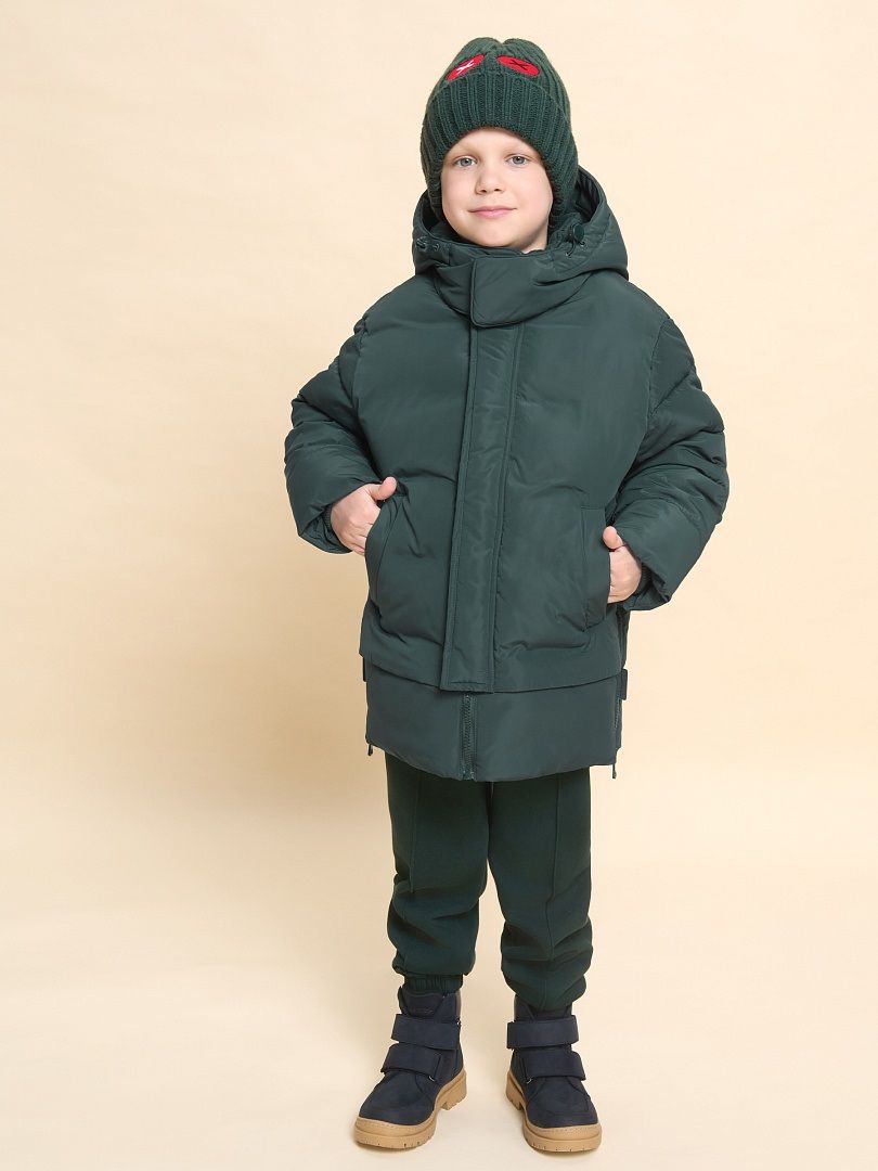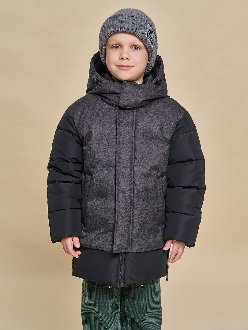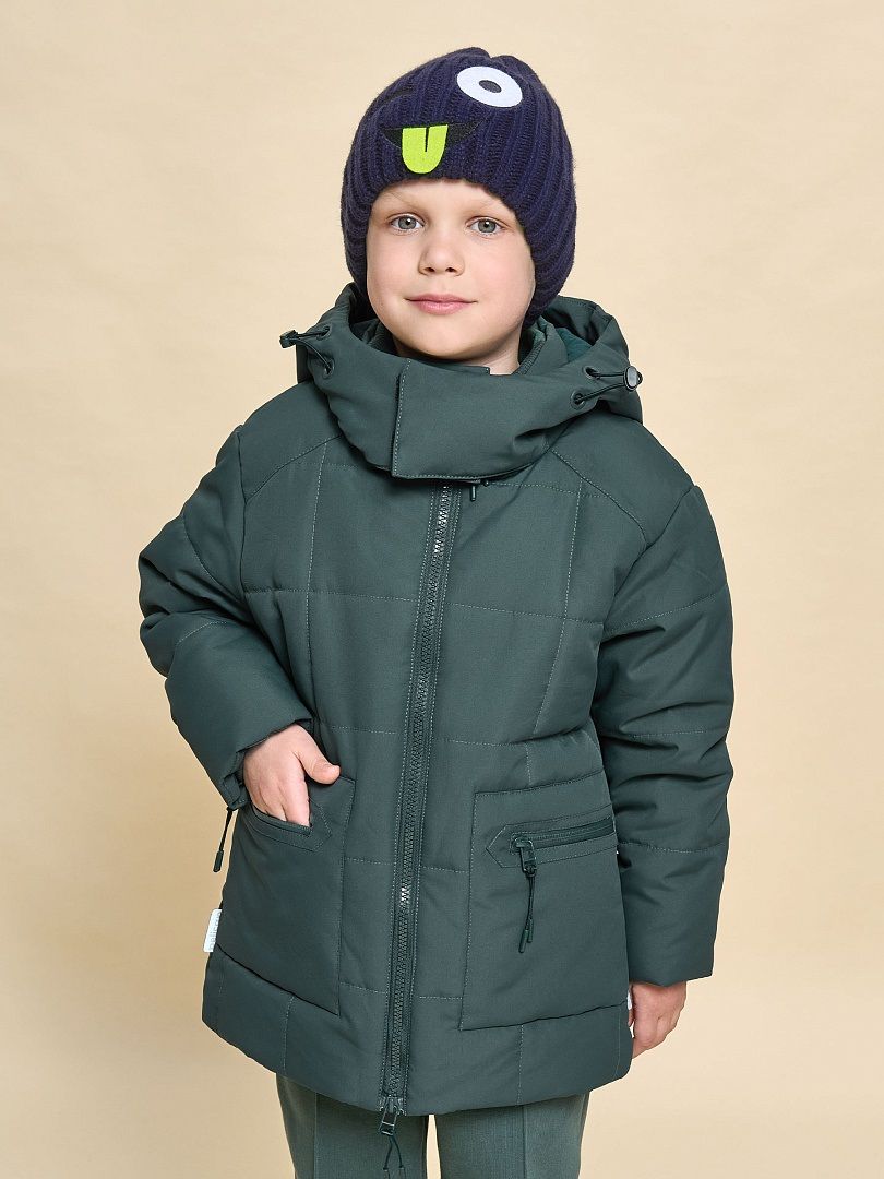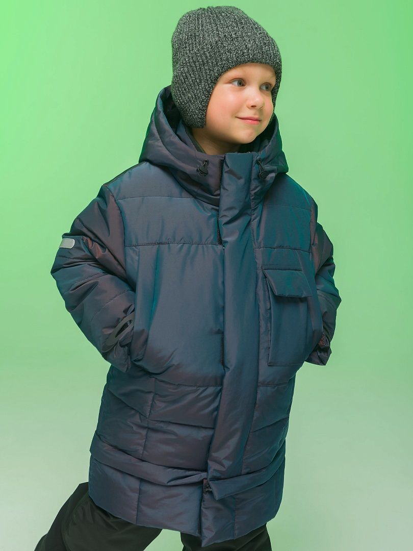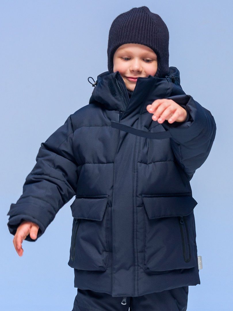 Состав: 100%полиэстер+мембрана, подклад: 100%полиэстер, утеплитель: экопух 100%полиэстер Куртка зимняя для мальчика. Модель прямого силуэта, объем - умеренный оверсайз. Куртка гладкая, без стёжки — суперактуальный тренд сезона. При этом утеплитель простёган внутри изделия — он равномерно распределён и надёжно зафиксирован. На внешнюю поверхность материала нанесена водоотталкивающая пропитка (DWR), она задерживает грязь и влагу снаружи — ребёнок не промокнет от снега, а комбинезон легко отстирается. Также есть дополнительная пропитка на внутренней стороне ткани — для более надёжной защиты от промокания. Капюшон с двумя швами, что обеспечивает анатомически правильную форму и комфортную посадку по голове. Легко одевается на шапку. Высокое забрало капюшона защищает шею и лицо от холода и ветра. Горло закрыто, шарф не нужен. Объём капюшона регулируется эластичным шнуром со стопперами. Центральная застёжка на пластиковую тракторную молнию, разъёмную с двух сторон — удобно садиться, пуллеры металлические, прочные. Сверху планка на велькро (липучках) — быстро застёгивается и расстёгивается. Куртка теплая — центральная молния с изнаночной стороны дополнительно закрыта ветрозащитной планкой. В рукавах внутренние манжеты из эластичной рибаны для защиты от холода и ветра. Рибана приятна на ощупь и при этом надолго сохраняет эластичность, не теряет форму. По переду объёмные накладные карманы с клапанами, закрываются на молнию. Внутренний карман на молнии для важных мелочей. В каждой куртке есть нейм-лейбл! Ребенок не потеряется и не потеряет куртку! В боковых швах и на спинке расположены светоотражающие элементы — безопасность в тёмное время суток. Модель без принта. Зимняя куртка с наполнителем из полиэстера — она тёплая, лёгкая, без проблем стирается, быстро сохнет, сохраняет отличную форму и цвет надолго. Мягкая флисовая подкладка добавляет дополнительную теплоту изделию во время холодов. В рукавах подкладка из гладкого полиэстера для лёгкости надевания. Отличная куртка для мальчика дошкольного и младшего школьного возраста, а также подростка. Идеальный, тёплый и стильный зимний пуховик. Рекомендуемый температурный режим: не ниже минус 30 градусов. Утеплитель: экопух. Куртка водоотталкивающая утеплённая подходит для носки в детский сад, школу, для прогулок и активного зимнего отдыха, игр на воздухе. Помните о правильном уходе за изделием: рекомендуется стирать при температуре не выше 30 °C, без предварительного замачивания, с изнанки. Это поможет сохранить качество и цвет куртки на длительное время.Не забывайте о выборе правильного размера. Используйте таблицу размеров на фотографии, чтобы выбрать подходящий вариант для вашего мальчика.Обратите внимание, что цвет товара на экране вашего устройства может отличаться от реального.