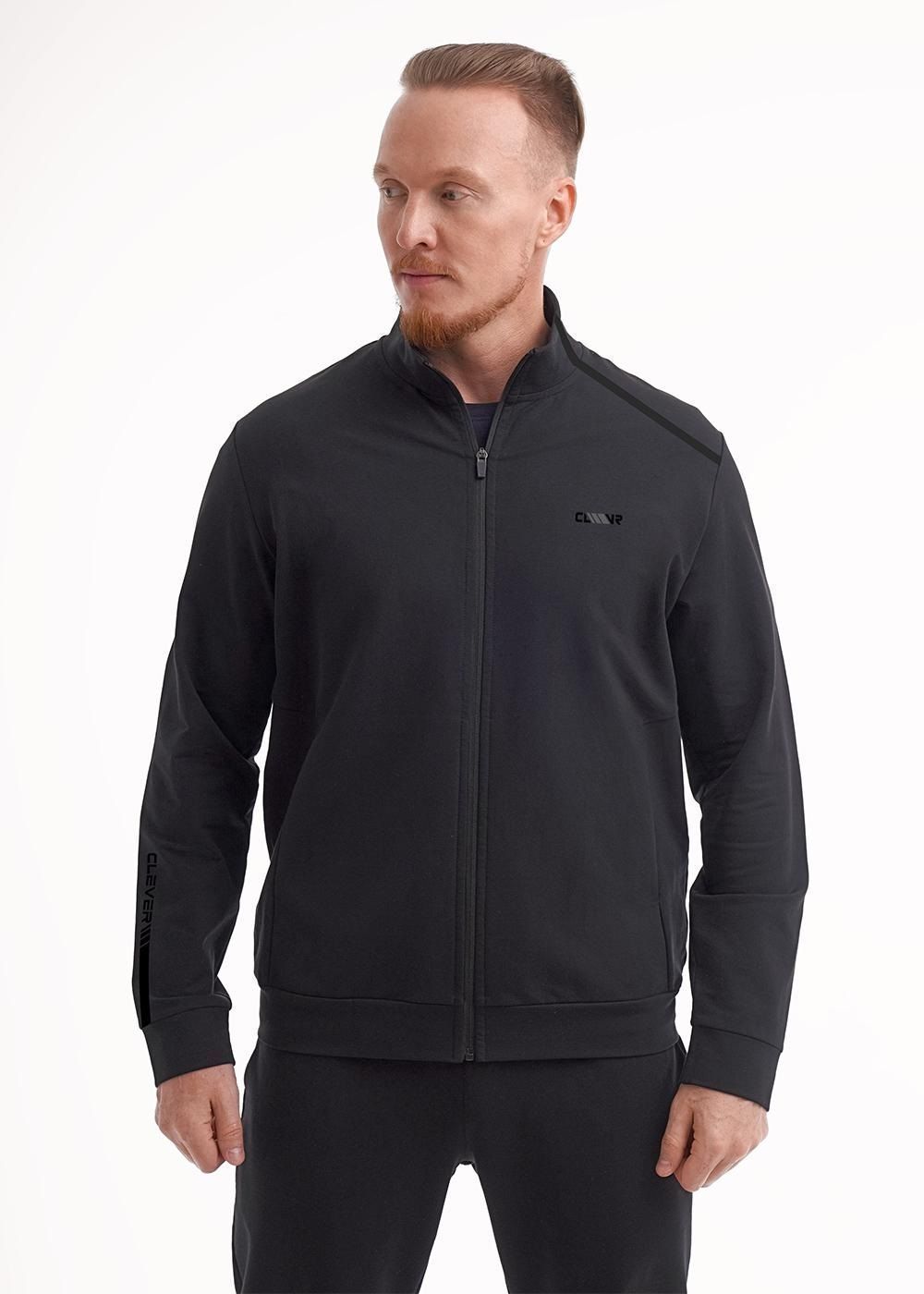 Состав: 95% хлопок, 5% эластан. Мужская толстовка выполнена из трикотажного полотна футер. Воротник-стойка ,застежка на молнию будут максимально защищать от ветра и холода. Изделие подходит для повседневного ношения и для занятий спортом, а так же дополнено имиджевым принтом.