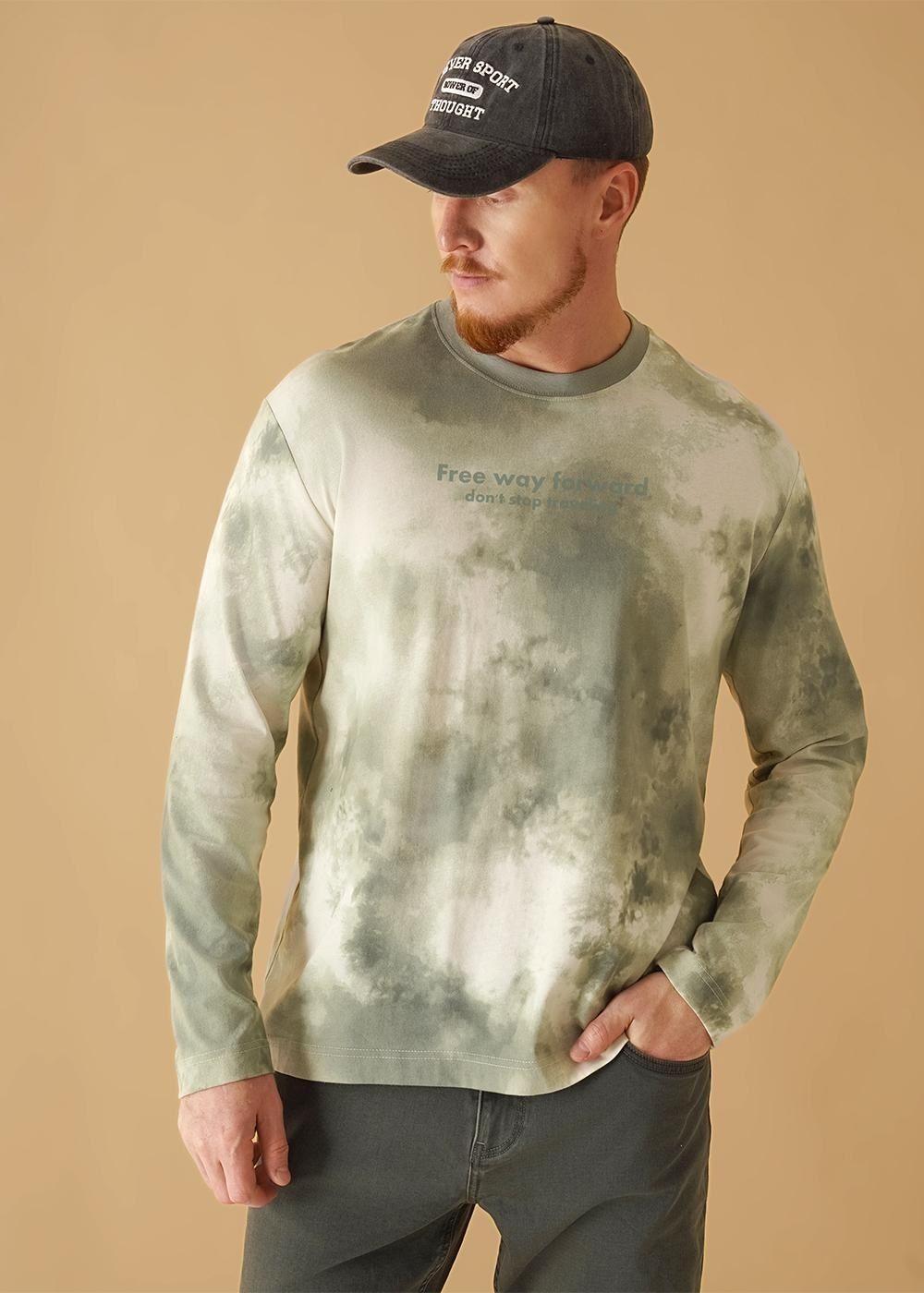Состав: 100% хлопок. Стильный мужской джемпер в хаотичную набивку из хлопкового трикотажного полотна. Изделие с круглым вырезом горловины и длинным рукавом. Модель дополняет принт и имиджевая фурнитура. Идеальный вариант для повседневного использования.