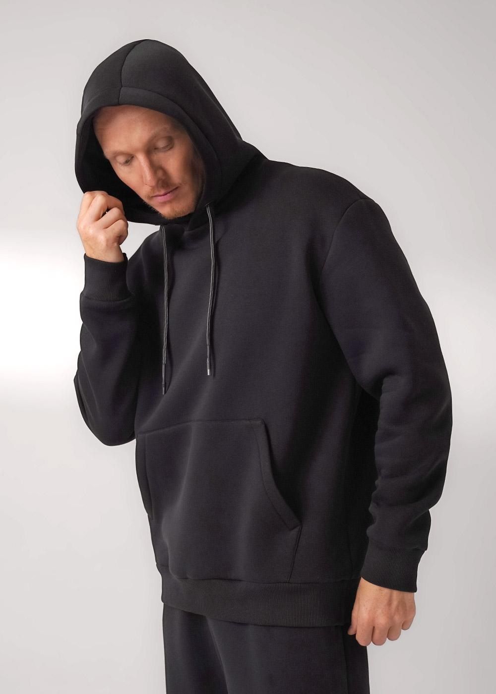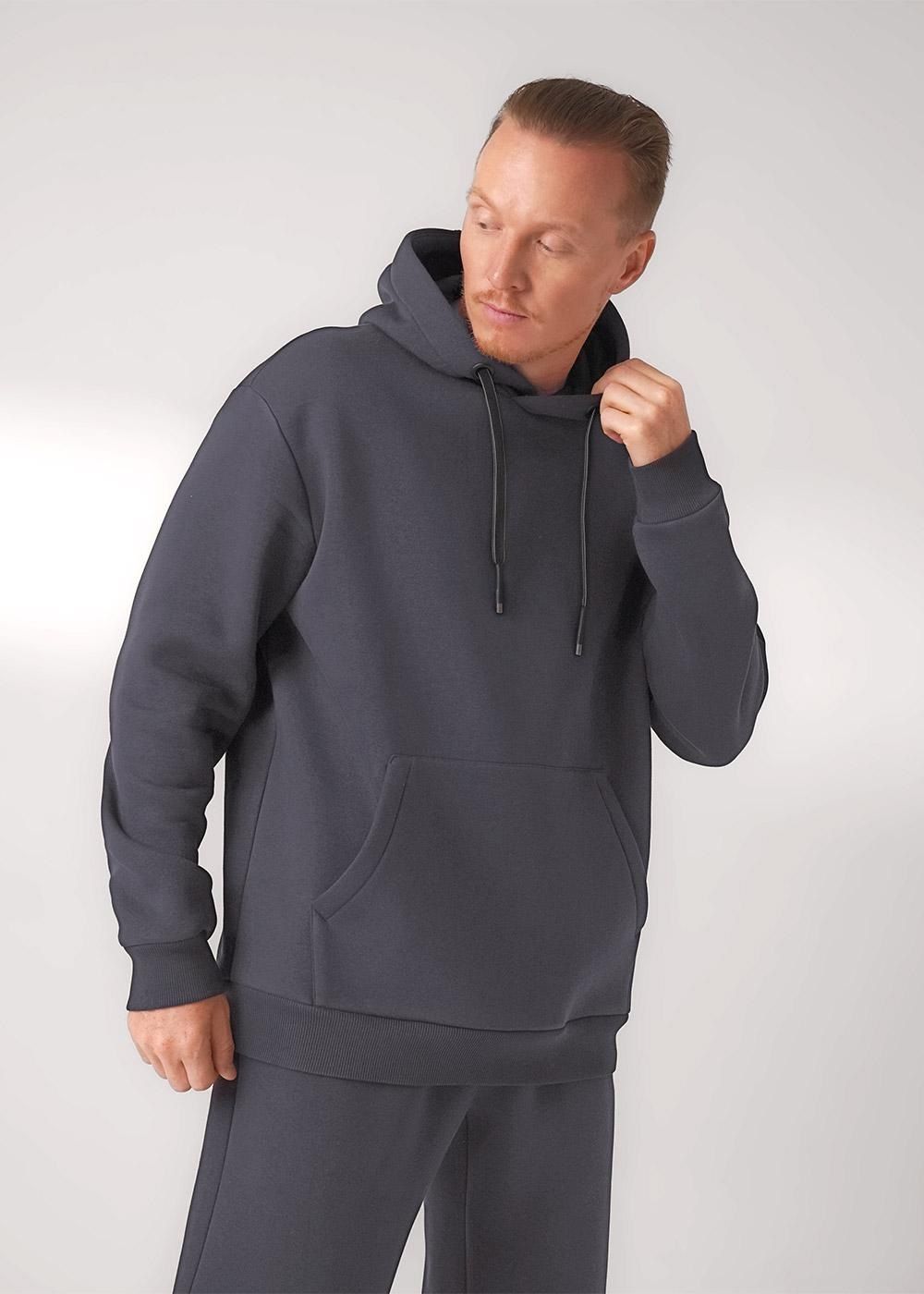 Состав: 65% хлопок, 35% полиэстер. Теплое мужское худи из футера с начесом на капюшоне с регулируемым шнуром, удобным спущенным рукавом и центральным карманом кенгуру. Изделие дополнено имиджевым принтом. Модель составит отличный комплект с брюками.