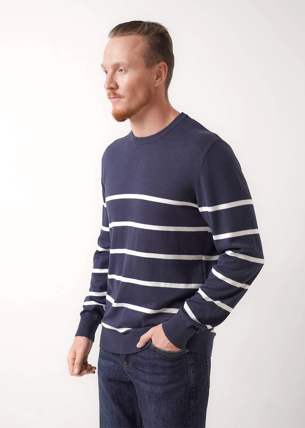 Состав: 50% хлопок, 50% акрил. Джемпер мужской в полоску из смесовой хлопковой пряжи с длинным рукавом и круглой горловиной. Прекрасно сохраняет тепло, комфортный в носке, отличное решение на холодное время года. Комбинируется с джинсами или брюками.