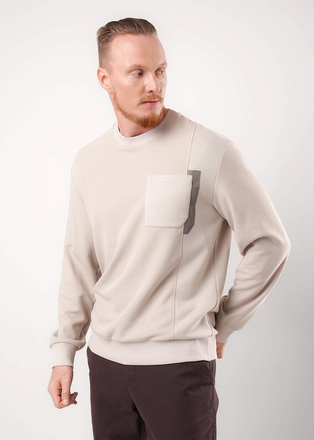Состав: 88% полиэстер, 12% вискоза. Стильный мужской комбинированный джемпер из трикотажного фактурного полотна. Изделие с круглым вырезом горловины и длинным рукавом на манжете. Модель дополняется нагрудным карманом. Отличный вариант на каждый день и встреч с друзьями.