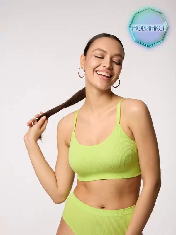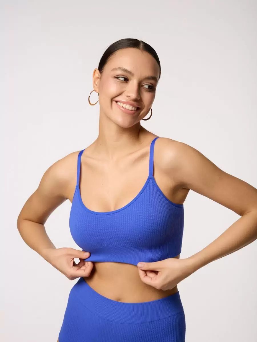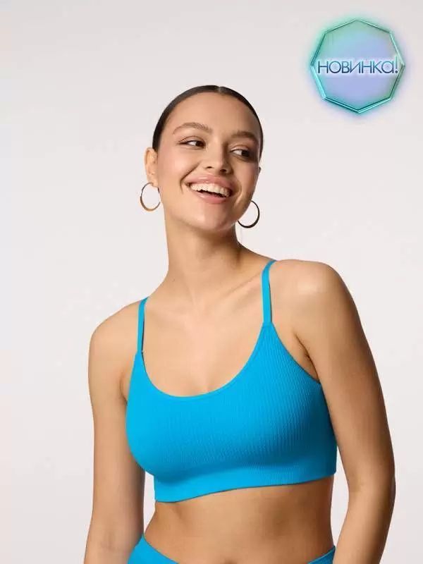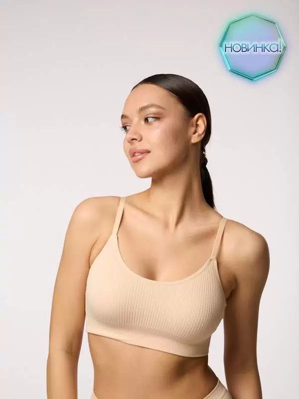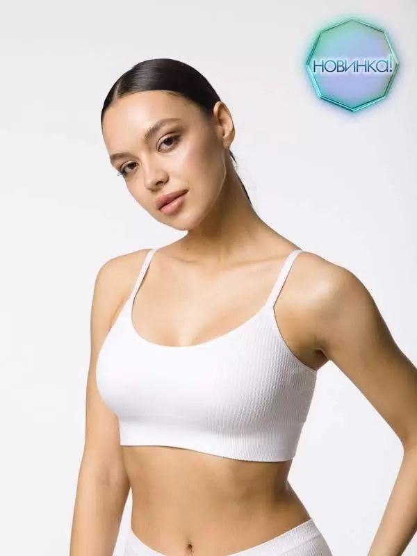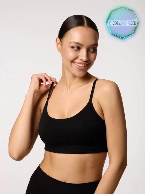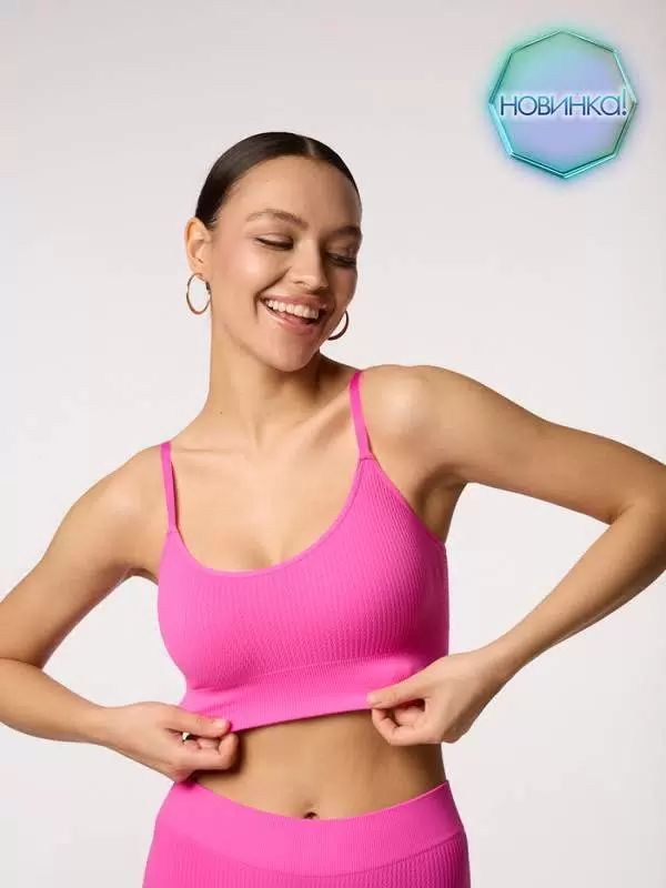 Состав: 90% полиамид;10% эластан.Бесшовный топ из со съемными вкладышами и регулируемыми бретелями