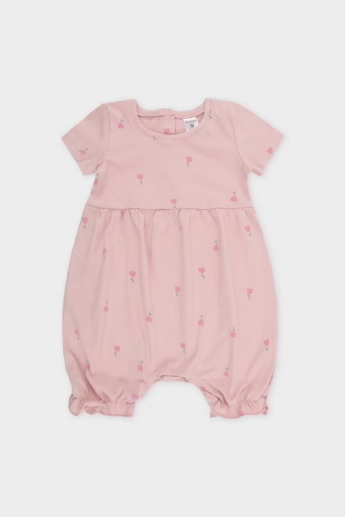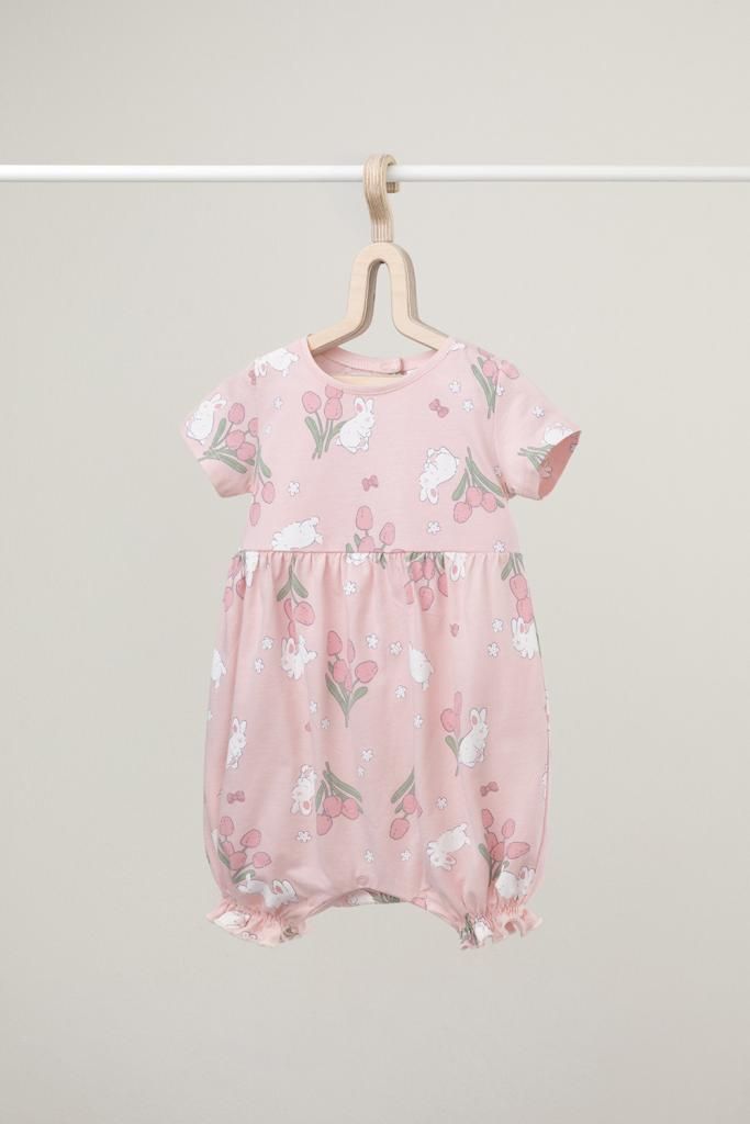 К 6495/тропический персик,зайчики и тюльпаны полукомбинезон (песочник) яс