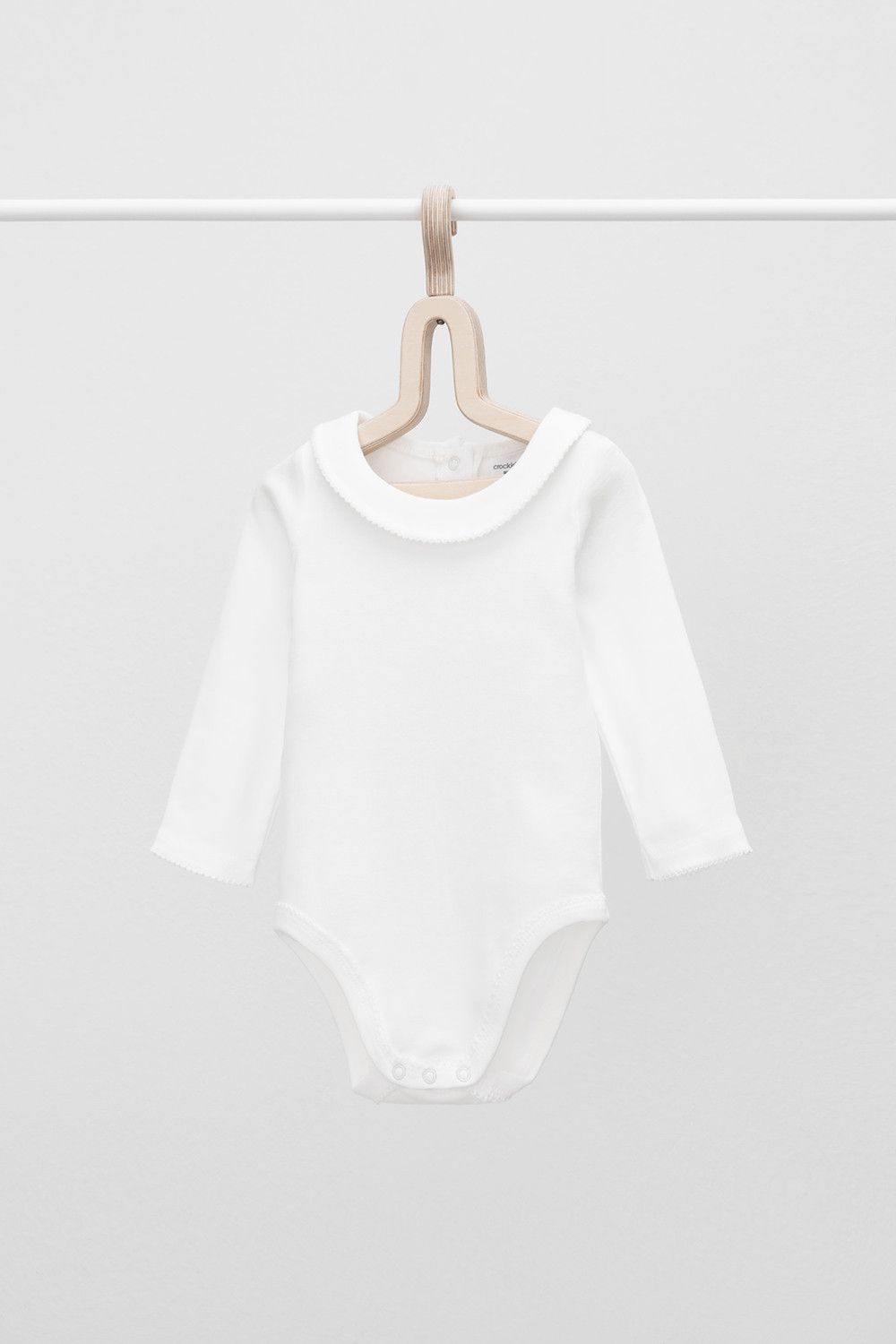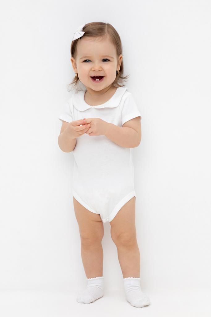 Состав: 100% хлопок. Боди с воротником для новорождённых из мягкого, эластичного трикотажа, произведённого из натурального хлопка. Изделие застёгивается на кнопки по спинке и в области паха. Украшено мережкой по краям. Все трикотажные полотна производятся в соответствии с нормами Швейцарского сертификата ЭкоТекс.