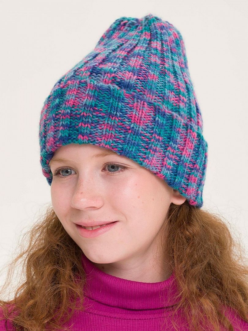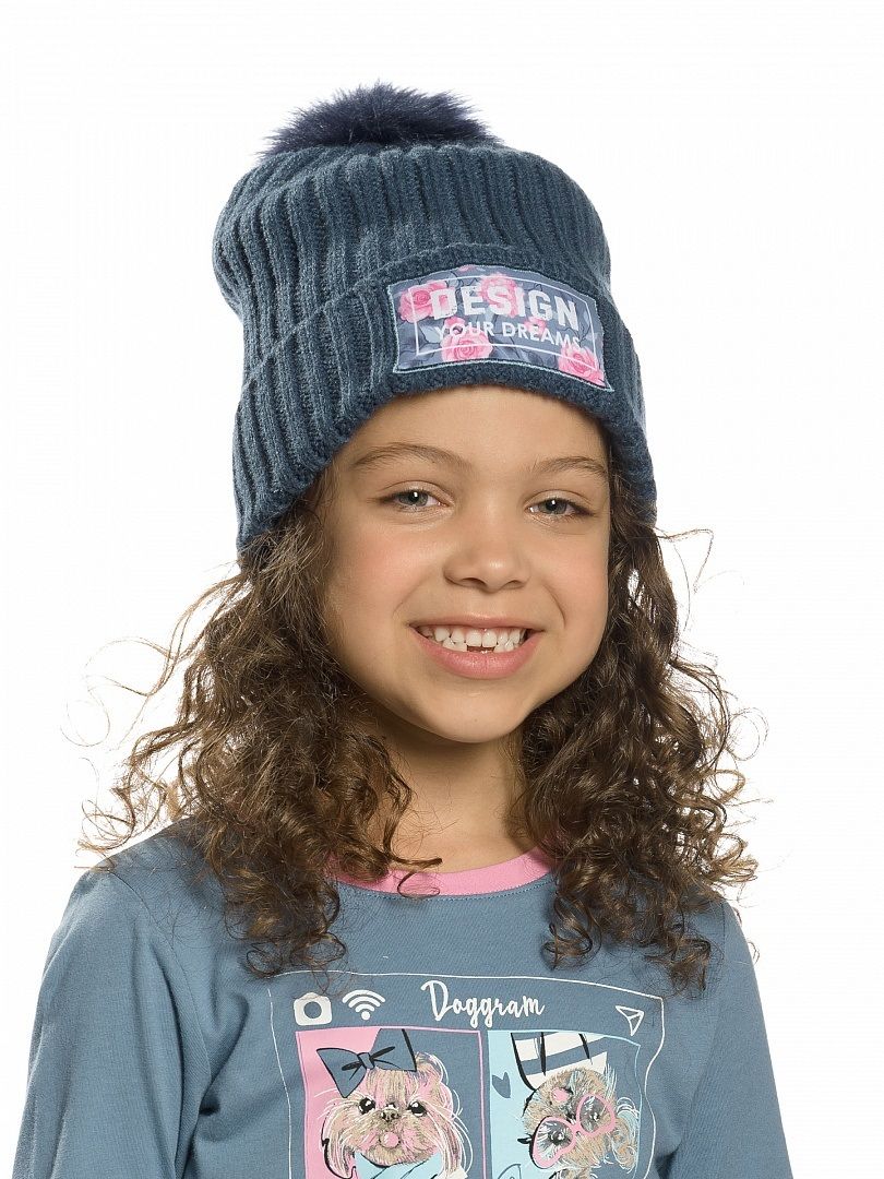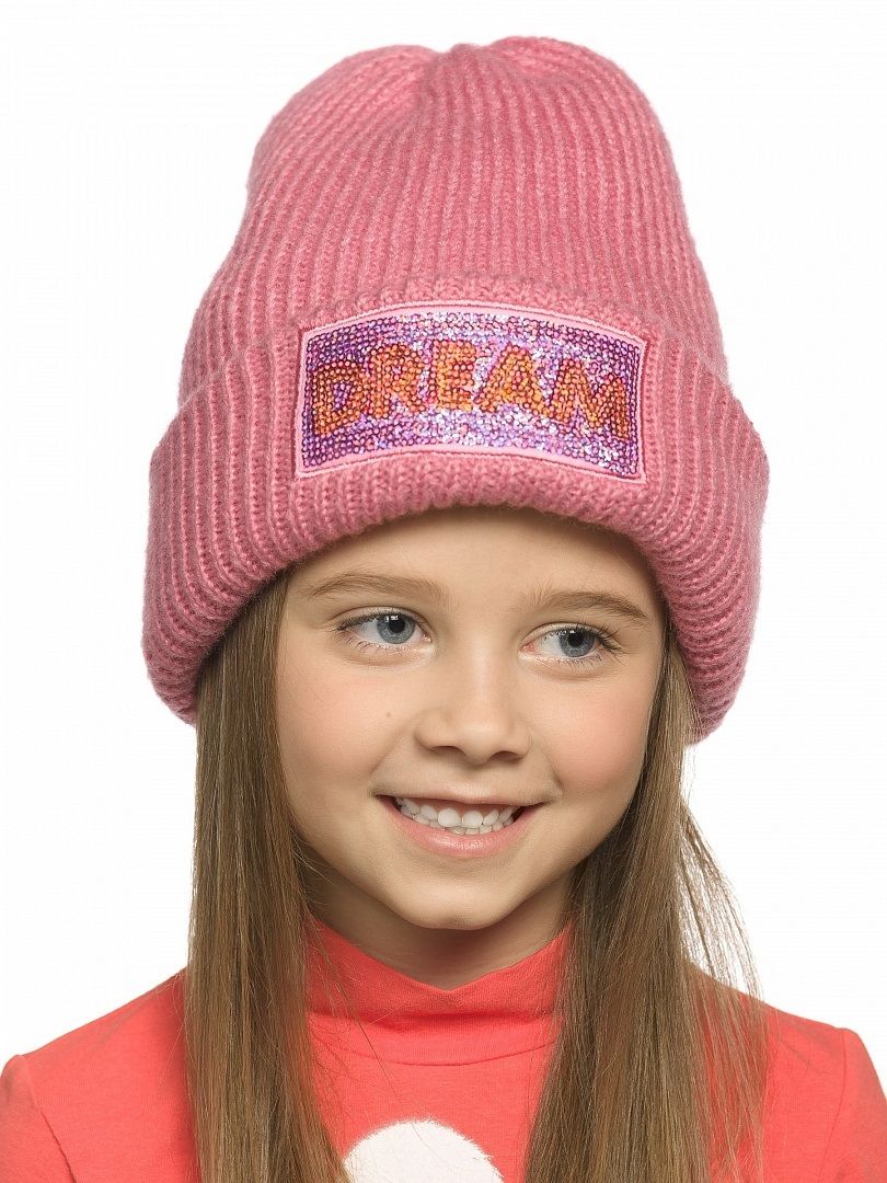 Состав: 100%акрил, подклад: 100%полиэстер Шапка для девочек. Вязаная шапка на подкладе из флиса, с отворотом. На отвороте нашивка с надписью "Дизайн твоей мечты".