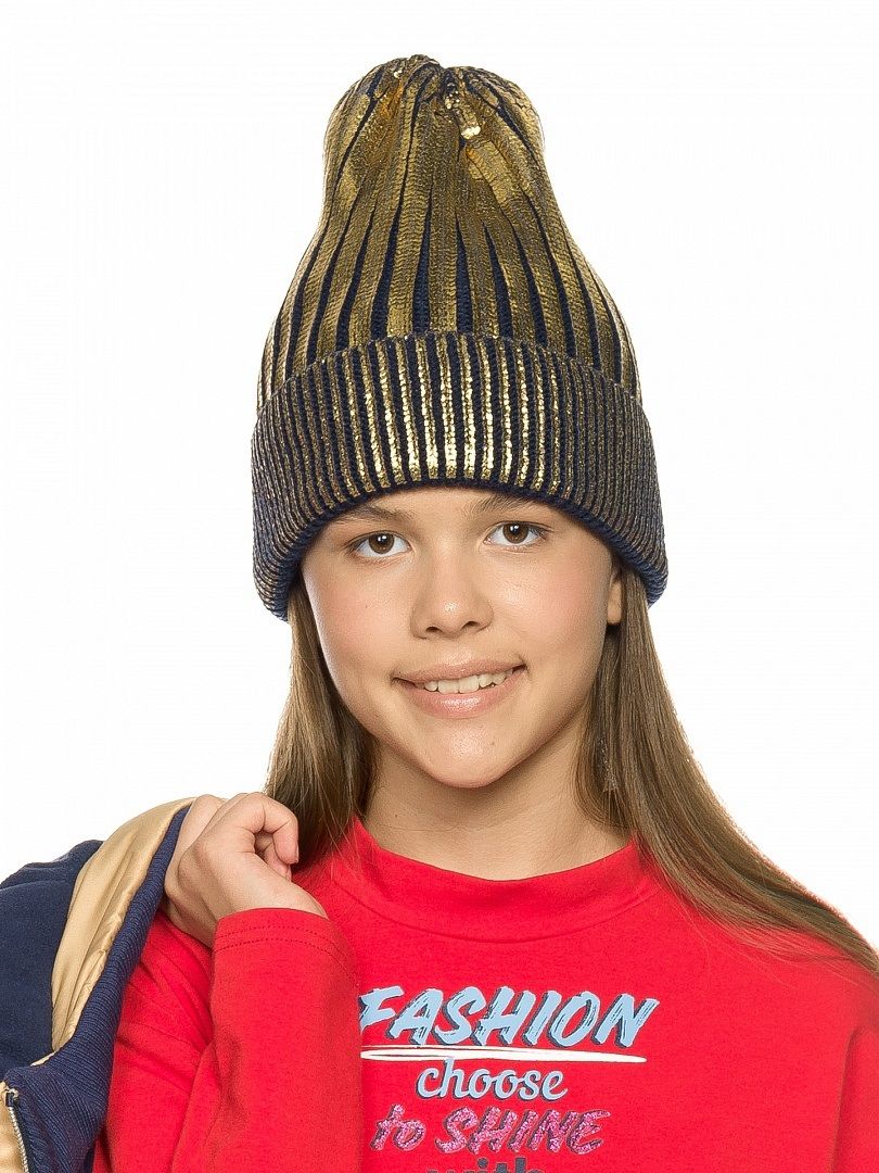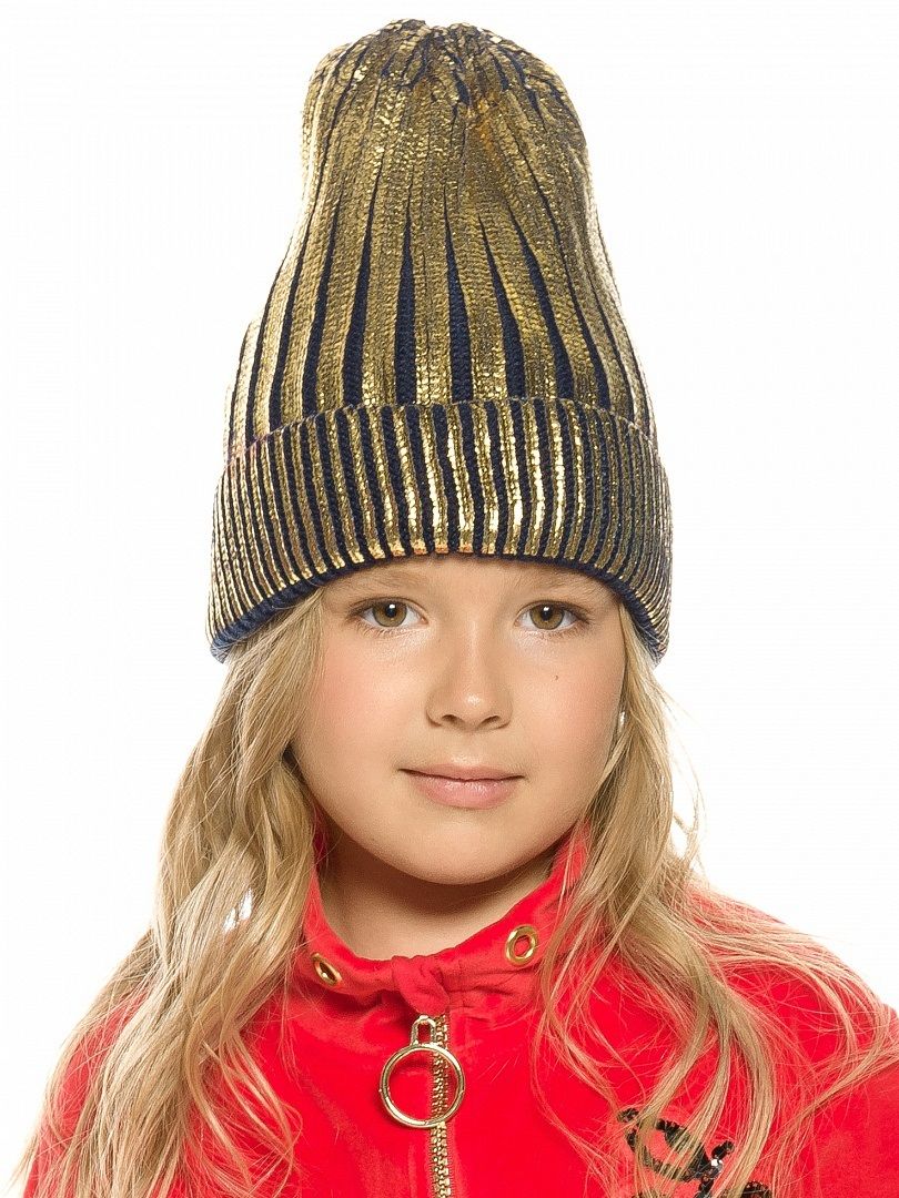Состав: 100%акрил, подклад: 100%полиэстер Вязаная шапка для девочек на флисе с отворотом и золотистым напылением.