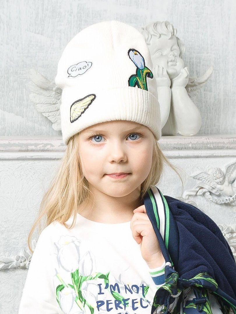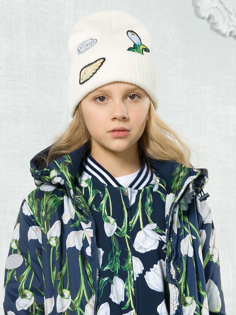 Состав: 100%акрил, подклад: 100%акрил Шапка для девочек. Вязаная, двойная, отворот-вязка "резинка", нашивки.