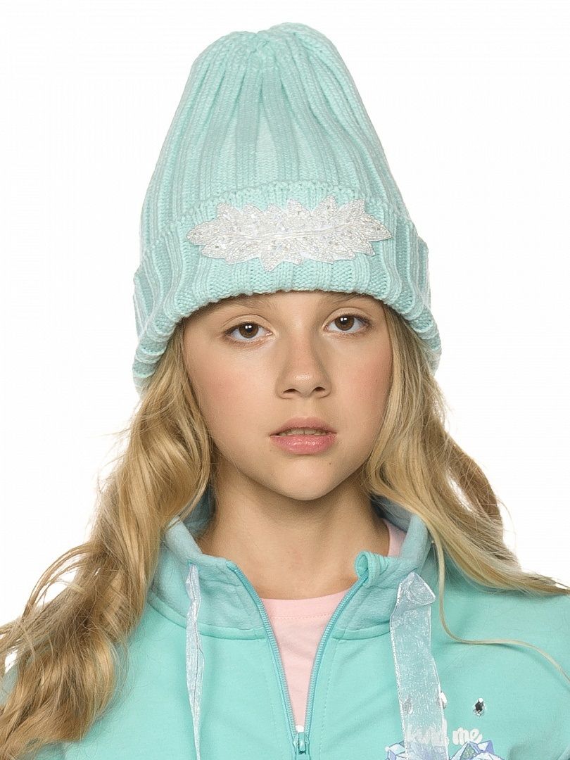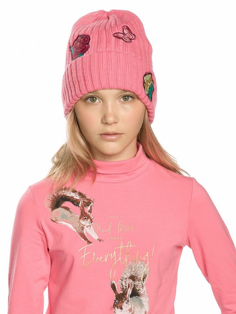 Состав: 100%акрил, подклад: 100%полиэстер Шапка вязаная для девочек на подкладе из флиса с отворотом, нашивка из бисера.