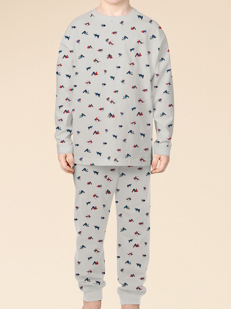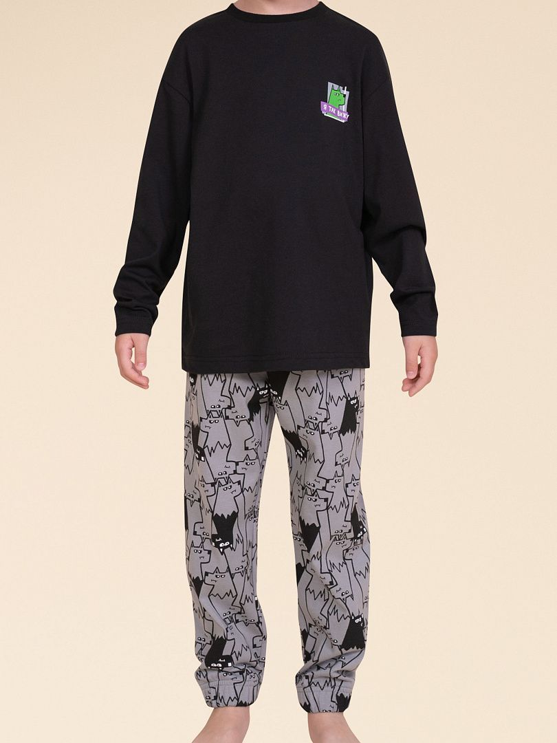 Состав: верх: 100%хлопок, низ: 100%хлопок Уютная пижама для мальчика. Изделие выполнено из 100% хлопка — идеальный вариант для детской пижамы. Ткань из хлопка приятна на ощупь и превосходно пропускает воздух, позволяя коже ребёнка дышать. В пижаме из хлопка ребёнку будет комфортно, даже если он сбросит одеяло. Футболка и брюки умеренного объёма, рукава свободные — пижама очень удобна для сна. В поясе брюк мягкая и широкая резинка — не перекручивается и не давит. Манжеты брюк и отделка горловины джемпера из эластичной рибаны — комплект удобно надевать и снимать. А также резинка отлично сохраняет форму в течение долгого времени. По переду забавный принт — порадует любого мальчишку! Принт мягкий и эластичный, отлично переносит многочисленные стирки. Комплект подходит для сна как дома, так и в детском саду — прекрасный выбор для вашего ребёнка!