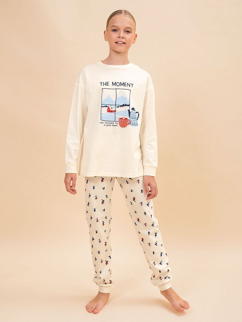 Состав: верх: 100%хлопок, низ: 100%хлопок Плюс 100 к уюту с нашей милой пижамой для девочки! Модель в стиле "хюгге" выполнена из 100% хлопка — оптимальный состав для детской пижамы. Ткань изделия тёплая, приятная на ощупь, превосходно пропускает воздух — кожа ребёнка дышит. Благодаря этому сон комфортный и качественный. Джемпер и брюки среднего объёма, плечо слегка спущено, рукава широкие и свободные — пижама очень удобна для сна. Широкая и мягкая резинка в поясе не перекручивается и не давит. Манжеты и отделка горловины эластичные — комплект удобно надевать и снимать. Пижама представлена в красивом бежевом цвете "овсяное молоко" — очень уютном и нежном. Комплект украшает оригинальный цветочный принт. Он непременно понравится любой девочке. Такая пижама идеальна для сна как дома, так и в детском саду — отличный подарок вашей дочке, сестрёнке или племяннице!