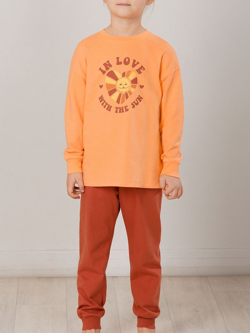 Состав: верх: 100%хлопок, низ: 100%хлопок Комплект для девочек: объемный джемпер с широким свободным рукавом и брюки. Идеально для повседневной носки и для сна. Невероятно нежная, мягкая. Приятная к телу пижамка. Подходит для любого времени года. Идеально для подарка. Незаменимая вещь для садика и дома. Перевод "Влюблена в солнце".