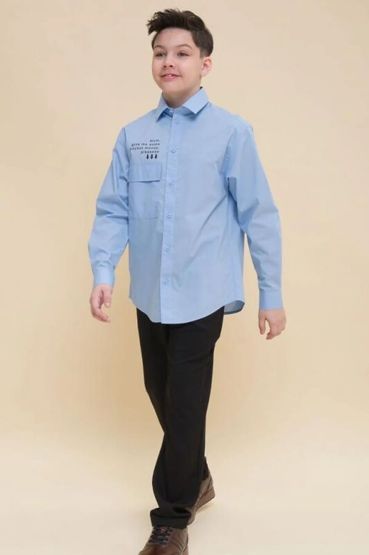 Состав: 60%хлопок 40%полиэстер Рубашка для мальчика школьная — выражение его индивидуального стиля и уверенности. Сорочка детская свободного силуэта. По спинке расположена кокетка с двумя защипами, что обеспечивает полную свободу движения во время активных игр и занятий. Накладной карман с клапаном — это не только удобство, но и модный акцент, который добавляет шарма этой рубашке. А над карманом забавный принт, который придает рубашке индивидуальность и юмор. Ведь какой мальчик не захочет носить рубашку, которая говорит за него: "Мама, положи в мой карман деньги, пожа-а-алуйста"! В составе ткани преобладает высококачественный хлопок, делая эту рубашку мягкой и приятной на ощупь. Благодаря полиэстеру рубашка детская не потеряет форму и превосходный внешний вид даже после многих стирок, а кожа вашего ребенка будет дышать, и ему будет комфортно в течение всего дня. Для школьных рубашек мы используем сорочечную ткань, плотностью 100 гр/м2. Эта школьная рубашка прекрасно сочетается с различными брюками, пиджаками и жилетами, что делает ее универсальной и практичной. Рубашка для мальчика не только стильная, но и функциональная, идеально дополнит образ вашего мальчика. Рекомендуемый уход за рубашкой также прост и эффективен: стирать при температуре не выше 30 °C, без предварительного замачивания, с изнанки, и аккуратно расправить перед сушкой. При правильном уходе рубашка не потеряет внешнего вида. Не забудьте выбрать нужный размер по таблице размеров на фото. Обратите внимание, что цвет товара на экране вашего устройства может немного отличаться от цвета реального изделия.