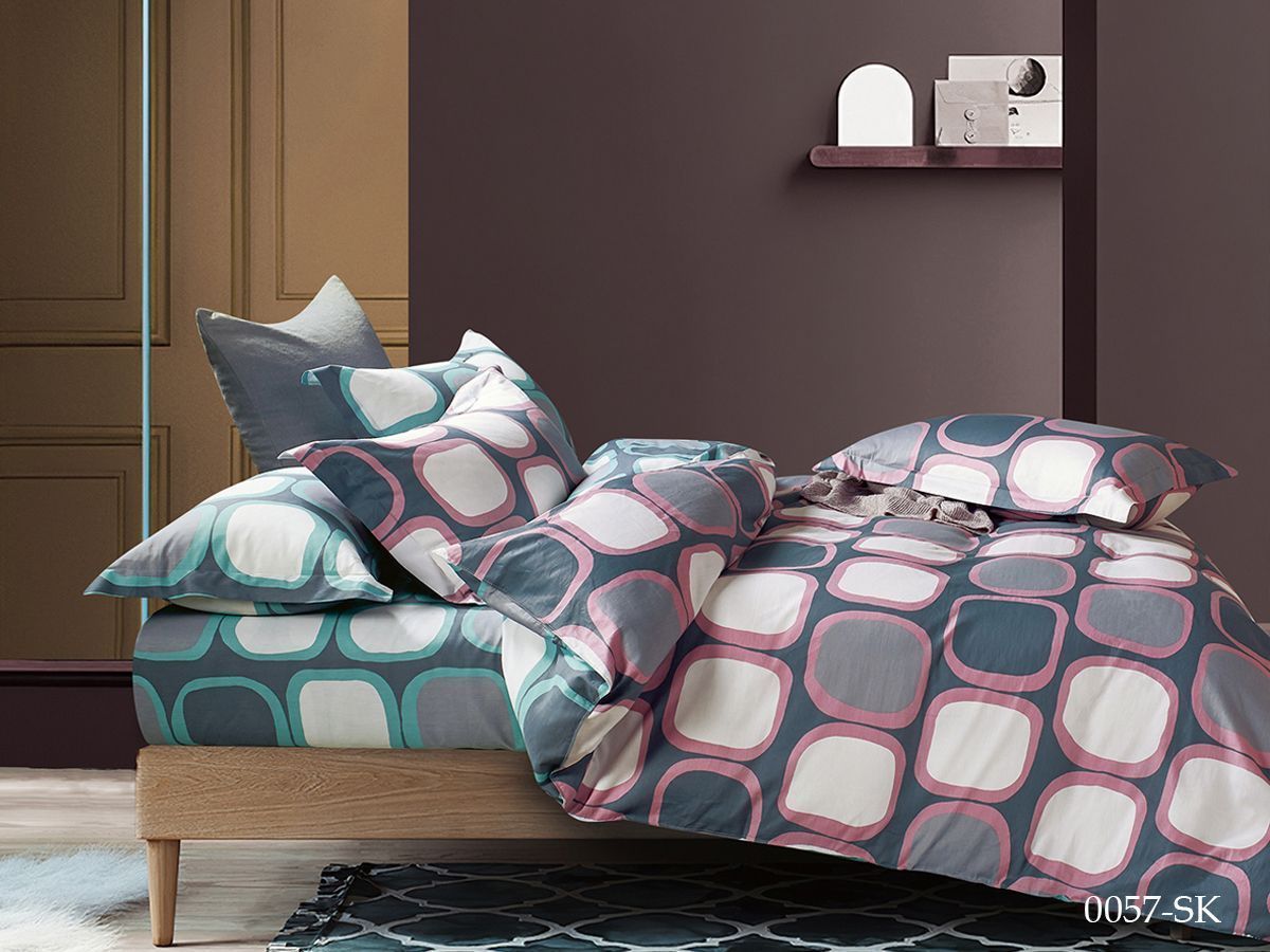 КПБ Cleo сатин набивной "Satin de Luxe" дуэт 150*210*2 230*250*1(±5) 50*70+5*2 70*70*2(±2), 41/0057-SK, Геометрия, Мультиколор