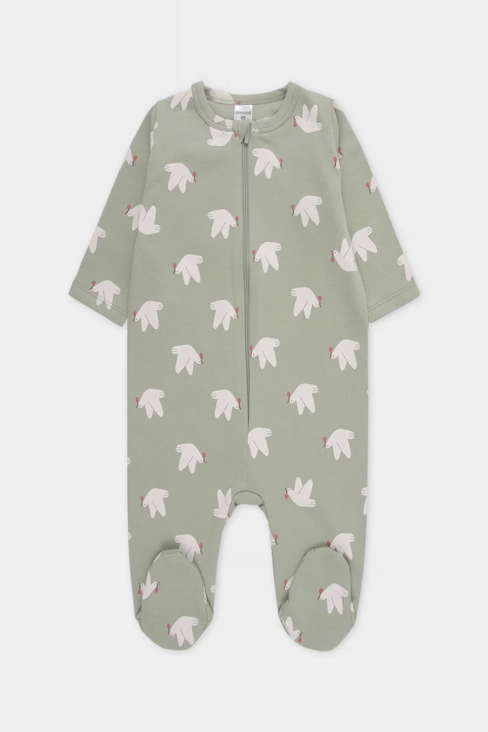 Состав: 100% хлопок. Комбинезон для новорождённых из тонкого трикотажа с начёсом, произведённого из натурального хлопка. Застёгивается спереди на молнию с защитой подбородка. Оригинальная набивка выполнена из стойких гипоаллергенных текстильных красителей. Все трикотажные полотна производятся в соответствии с нормами Швейцарского сертификата ЭкоТекс.