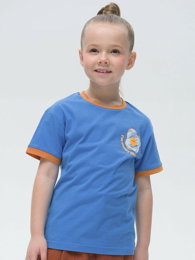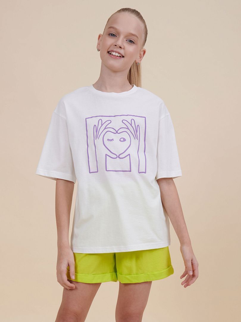 Состав: 100%хлопок Футболка для девочки. 100% хлопок в составе – ткань мягкая, дышащая, приятная на ощупь. Контрастная обработка по горловине и рукавам – гармоничное сочетание с позитивным принтом спереди. Умеренный объем, мягкое плечо – отлично сидит, прекрасно комбинируется с кроп-топом и жилетом, джоггерами и велосипедками. Идеальна для активного детства – на каждый день, для учебы и занятия спортом.