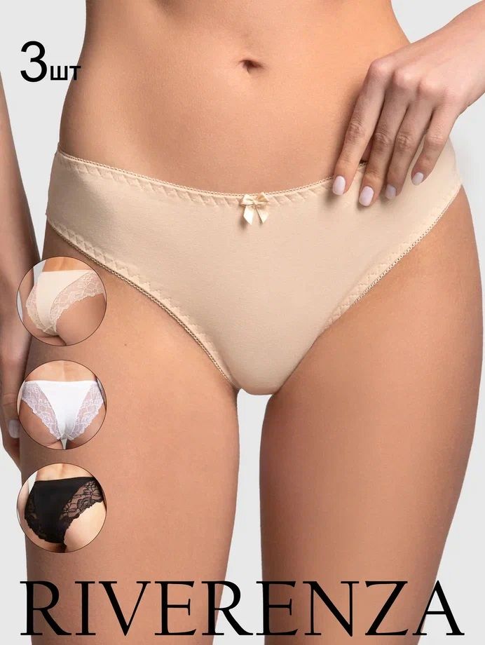 Состав: 80% хлопок, 15% полиамид, 5% эластан. Хлопковые трусы слипы средней посадки с кружевом.