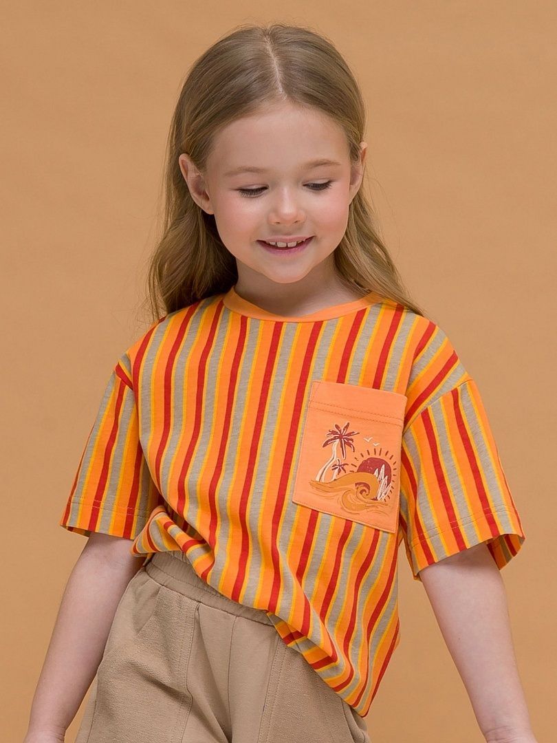 Состав: 100%хлопок Футболка оверсайз принтованная в полоску для девочки. 100% хлопок в составе – ткань мягкая, дышащая, приятная на ощупь. Накладной карман с принтом – яркий визуальный акцент и изюминка модели. Футболка отлично подходит для создания стильного образа весной и летом в паре со слоучами или шортами. Идеальна для активного детства – на каждый день, для учебы и занятия спортом.