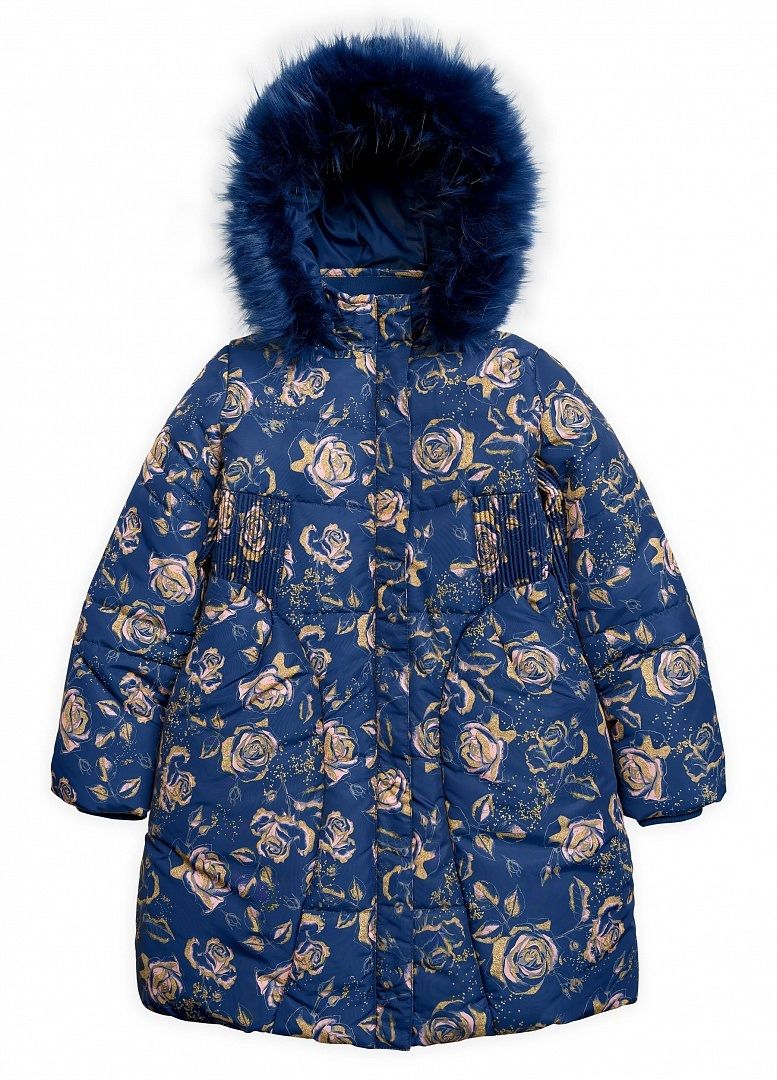 Состав: 100%полиэстер, подклад: 100%полиэстер, утеплитель: 100%полиэстер Пальто для девочек.Рекомендованный температурный режим: не ниже -15°С. Силуэт "овал"- ХИТ! Втачной капюшон, совмещенный с воротником. Меховая опушка съемная. Боковые карманы с листочкой вшиты в горизонтальный подрез переда. Низ изделия присобран на эластичную резину.