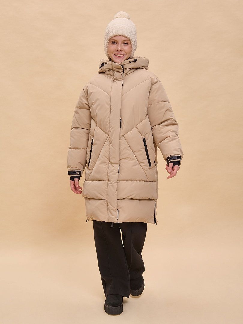 Состав: 68%полиэстер 32%нейлон+мембрана, подклад: 100%полиэстер, утеплитель: экопух 100%полиэстер Пальто зимнее для девочки из мембранной ткани. На внешнюю поверхность материала нанесена водоотталкивающая пропитка (DWR), она задерживает грязь и влагу снаружи — ребёнок не промокнет. Также есть дополнительная пропитка на внутренней стороне ткани. Куртка прямого силуэта оверсайз подходит для любого типа фигуры. Капюшон двухшовный, что обеспечивает анатомически правильную форму и комфортную посадку по голове. Капюшон не отстегивается, предусмотрена регулировка объема эластичными шнурами с пластиковыми стопперами. Внутренние манжеты рукавов из эластичной рибаны (ткань в рубчик) — дополнительная защита от ветра и холода. Ширина горловины позволяет надевать свитер с объемным воротником или объёмный шарф. Верхняя часть переда и спинки имитирует надетый поверх жилет, объём которого регулируется эластиком со стопперами — оригинально и стильно. Центральная застёжка на тракторную молнию с двумя пуллерами — удобно садиться. Тканевый стоппер защищает подбородок от зажима молнией. Фиксирующая строчка предохраняет планку от «заедания» в процессе застёгивания. Куртка-пальто тёплая — дополнительно, для защиты от ветра и холода, центральная молния закрыта ветрозащитной планкой на липучках (велькро). В боковых швах вставлены застёжки-молнии для возможности увеличения ширины по низу изделия. Пальто стёганое дополнено прорезными карманами на молнии — удобно пользоваться. Карманы с боковым входом закрываются на водонепроницаемую молнию со скрытыми звеньями — их содержимое не промокнет. Карманы внутри утеплены мягким флисом. В каждой куртке нейм-лейбл! Ребёнок не потеряется и не потеряет куртку! На спинке и в боковых швах расположены светоотражающие элементы — безопасность в тёмное время суток. Изделие неприхотливо в уходе. Пальто без принта. Куртка выполнена из полиэстера и нейлона (+мембраны) — она тёплая, не промокает, легко стирается, быстро сохнет, сохраняет отличную форму и цвет надолго. Подкладка из мягкого, тёплого и дышащего флиса (по стану, внутреннему воротнику и в капюшоне). В рукавах подкладка из полиэстера — благодаря этому ребенку легко надевать куртку, руки не путаются в рукавах. Пуховик выполнен в бежевом цвете. Его просто комбинировать с различными брюками, юбками, колготками. Размерная линейка: 3 (98); 4 (104); 5 (110); 6 (116); 7 (122); 8 (128); 9 (134); 10 (140); 11 (146). Пальто оверсайз идеально для маленьких девочек дошкольного и младшего школьного возраста, а также девочек-подростков. Рекомендуемый температурный режим: не ниже минус 30 градусов. Утеплитель: экопух. В рукавах дополнительный слой тонкого синтепона. Модель подходит для носки в детский сад, школу, для прогулок и отдыха. Зимнее пальто для девочки — замечательный подарок для дочери или внучки на День рождения или любой другой праздник.