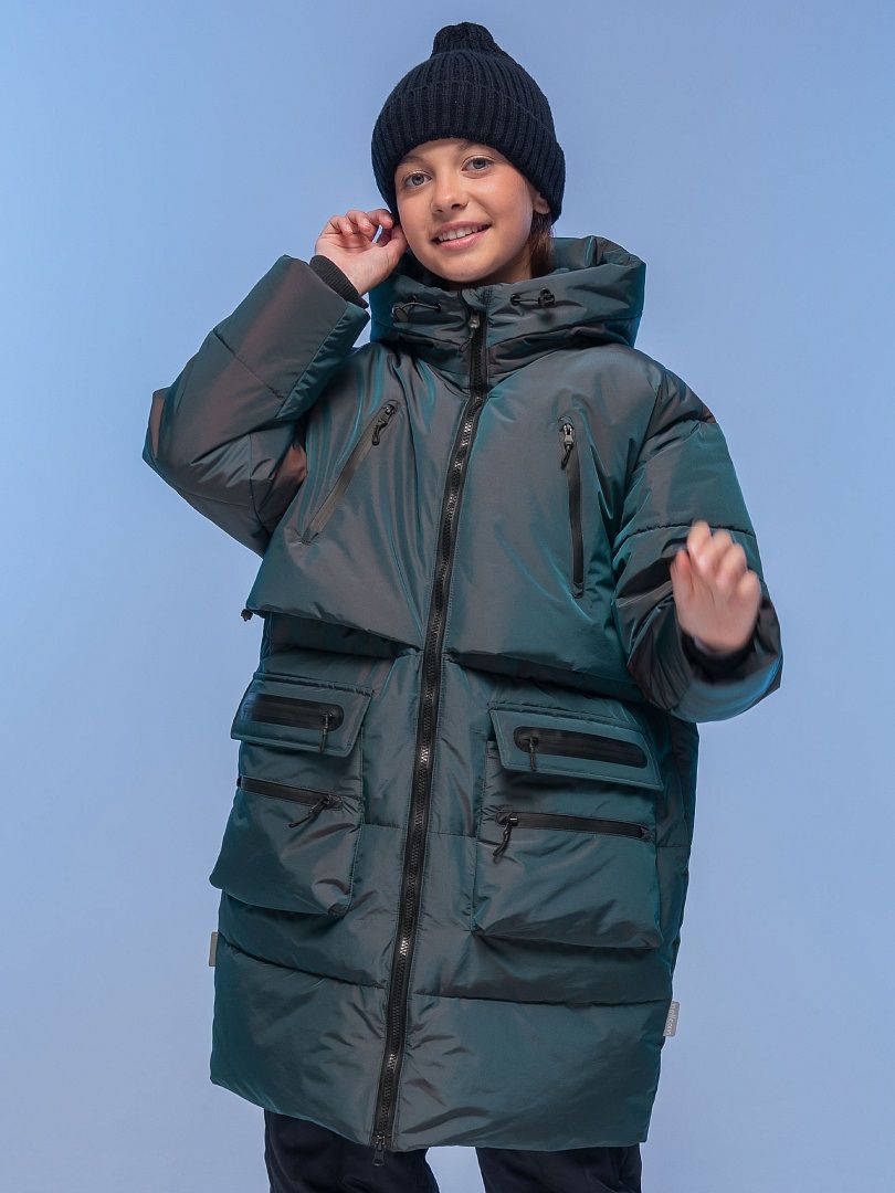Состав: 60%нейлон 40%полиэстер+мембрана, подклад: 100%полиэстер, утеплитель: экопух 100%полиэстер Пальто зимнее для девочки из мембранной ткани. На внешнюю поверхность материала нанесена водоотталкивающая пропитка (DWR), она задерживает грязь и влагу снаружи — ребёнок не промокнет. Также есть дополнительная пропитка на внутренней стороне ткани. Пальто трендового оверсайз-силуэта подходит для любого типа фигуры. Капюшон с двумя швами, что обеспечивает анатомически правильную форму и комфортную посадку по голове. Капюшон не отстегивается, предусмотрена регулировка объема эластичными шнурами с пластиковыми стопперами. Внутренние манжеты рукавов из эластичной рибаны (ткань в рубчик) — дополнительная защита от ветра и холода. Ширина горловины позволяет надевать свитер с объемным воротником или объёмный шарф. Верхняя часть переда и спинки имитирует надетый поверх жилет, объём которого регулируется эластиком со стопперами — оригинально и стильно. Центральная застёжка на тракторную молнию с двумя пуллерами — удобно садиться. Тканевый стоппер защищает подбородок от зажима молнией. Фиксирующая строчка предохраняет планку от «заедания» в процессе застёгивания. Куртка-пальто тёплая — дополнительно, для защиты от ветра и холода, центральная молния закрыта ветрозащитной планкой с внутренней стороны. На груди удобные прорезные карманы на молнии. Ниже накладные карманы с клапанами, на которых также есть молнии, обрамлённые водоотталкивающей рамкой (молния открывается, но кармана нет). Карманы с боковым входом закрываются на водонепроницаемую молнию со скрытыми звеньями — содержимое карманов не промокнет. Карманы внутри утеплены мягким флисом. В каждой куртке нейм-лейбл! Ребёнок не потеряется и не потеряет куртку! На спинке и в боковых швах расположены светоотражающие элементы — безопасность в тёмное время суток. За изделием легко ухаживать. Пальто стёганое без принта. Пуховик выполнен из нейлона, полиэстера и мембраны — он тёплый, не промокает, легко стирается, быстро сохнет, сохраняет отличную форму и цвет надолго. Подкладка из мягкого, тёплого и дышащего флиса (по стану, внутреннему воротнику и в капюшоне). В рукавах подкладка из полиэстера — благодаря этому ребенку легко надевать куртку, руки не путаются в рукавах. Куртка выполнена в цвете хамелеон, меняющая цвет от зеленого до черного. Её легко сочетать с разнообразными брюками, юбками, колготками. Размерная линейка: 3 (98); 4 (104); 5 (110); 6 (116); 7 (122); 8 (128); 9 (134); 10 (140); 11 (146). Пальто оверсайз подходит как для маленьких девочек дошкольного и младшего школьного возраста, так и девочек-подростков. Рекомендуемый температурный режим: не ниже минус 30 градусов. Утеплитель: экопух. В рукавах дополнительный слой тонкого синтепона. Модель идеальна для носки в детский сад, школу, для прогулок и отдыха. Зимнее пальто для девочки — отличный подарок для дочери или внучки на День рождения или любой другой праздник.