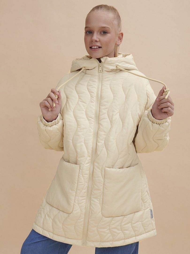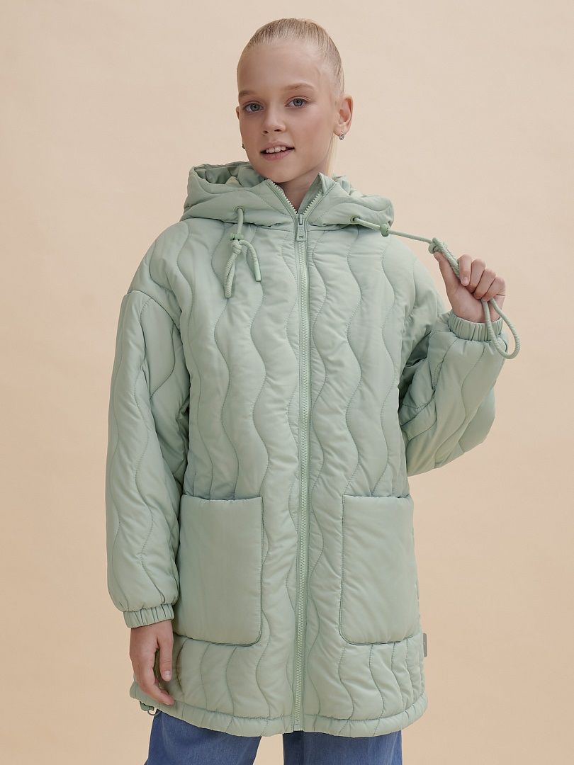 Состав: 100%полиэстер + мембрана, подклад: 60%хлопок 40%полиэстер, подклад рукавов: 100%полиэстер, утеплитель: 100%полиэстер Удлиненная весенняя ветровка, стеганая вертикальными параллельными строчками с синтепоном 150 гр. Силуэт: прямой, мягкий оверсайз. Фигурная линия низа делает силуэт более мягким. Водоотталкивающая пропитка (DWR) наносится на внешнюю поверхность ткани и задерживает грязь и влагу снаружи. Дополнительный слой на внутренней стороне ткани не позволяет ребенку промокнуть. Наличие в составе ткани мембраны делает куртку максимально комфортной при носке. Хлопковый трикотаж в капюшоне и по стану - хорошая воздухопроницаемость, ребенок не вспотеет, в рукавах подклад из полиэстера - для удобства надевания. Капюшон двухшовный - хорошо сидит на голове, неотстегивающийся. Объём капюшона регулируется двухцветным шнуром с декором, который хочется потрогать, рассмотреть, поиграть. Центральная застежка на тракторную молнию с двумя пуллерами. Не заедает и удобно расстегивать! Тканевый стоппер защищает подбородок от зажима молнией. Прямой рукав слегка заужен книзу и окантован эластичной тесьмой. Накладные карманы на синтепоне - р