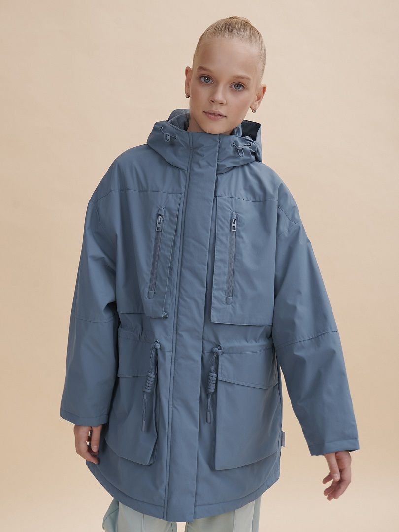 Состав: 100%полиэстер+мембрана, подклад: 100%полиэстер, утеплитель: 100%полиэстер Утепленная ветровка для девочки прямого силуэта, с сильно спущенным плечом с температурным режимом не ниже +5°С. Наличие в составе ткани мембраны делает куртку максимально комфортной при носке. МНОГОЗОНАЛЬНЫЙ ПОДКЛАД - уютный флис в капюшоне, воротнике и по стану; утеплитель из легкого синтепона (40 г/м2) в рукавах и ниже линии талии. ПОДКЛАД ИЗ ПОЛИЭСТЕРА необходим для лёгкого надевания изделия, обладает легкой степенью грязеотталкивания. Чтобы вашему ребенку было тепло и удобно. Водоотталкивающая пропитка (DWR) наносится на внешнюю поверхность ткани и задерживает грязь и влагу снаружи. Дополнительный слой на внутренней стороне ткани не позволяет ребенку промокнуть. НОВАЯ фактурная ткань с имитацией вафли приятная на ощупь - тренд сезона. Объемный рукав по низу фиксируется на манжету из основной ткани с эластичной резиной внутри. По переду накладные карманы - кенгуру с клапанами. По низу изделия утяжка эластичным шнуром с регулировкой пластиковыми стопперами - позволяет менять силуэт и сохранять тепло. Регу