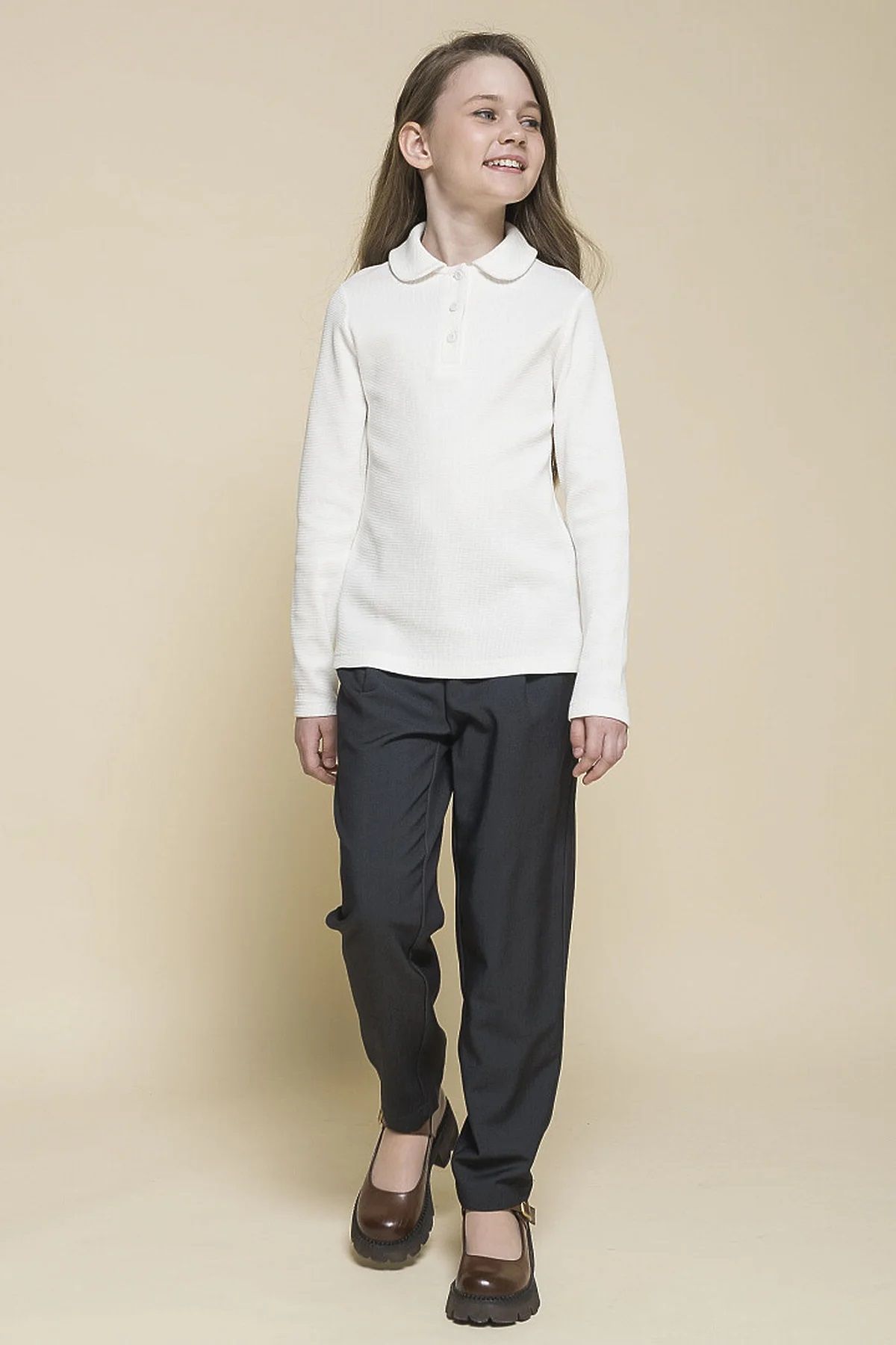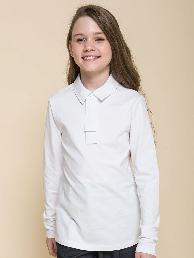Состав: 95%хлопок 5%эластан Трикотажный джемпер прилегающего силуэта для девочки. Приятный на ощупь, с большим содержанием хлопка в составе, гигроскопичный и простой в уходе вафельный трикотаж. В джемпере комфортно в течение всего дня, ничего не давит, не колет, не сковывает движения. Модель с аккуратным отложным воротничком со скруглёнными концами застёгивается по центру на три пуговицы — ребёнку удобно надевать и снимать джемпер через голову. Пуговицы тон в тон с матовым покрытием софт-тач — тактильно приятные и добавляют модели элегантности. Лаконичный дизайн лонгслива позволяет сочетать его с различными моделями школьной формы: юбками, брюками, сарафанами. Модный и практичный вариант одежды для школы.