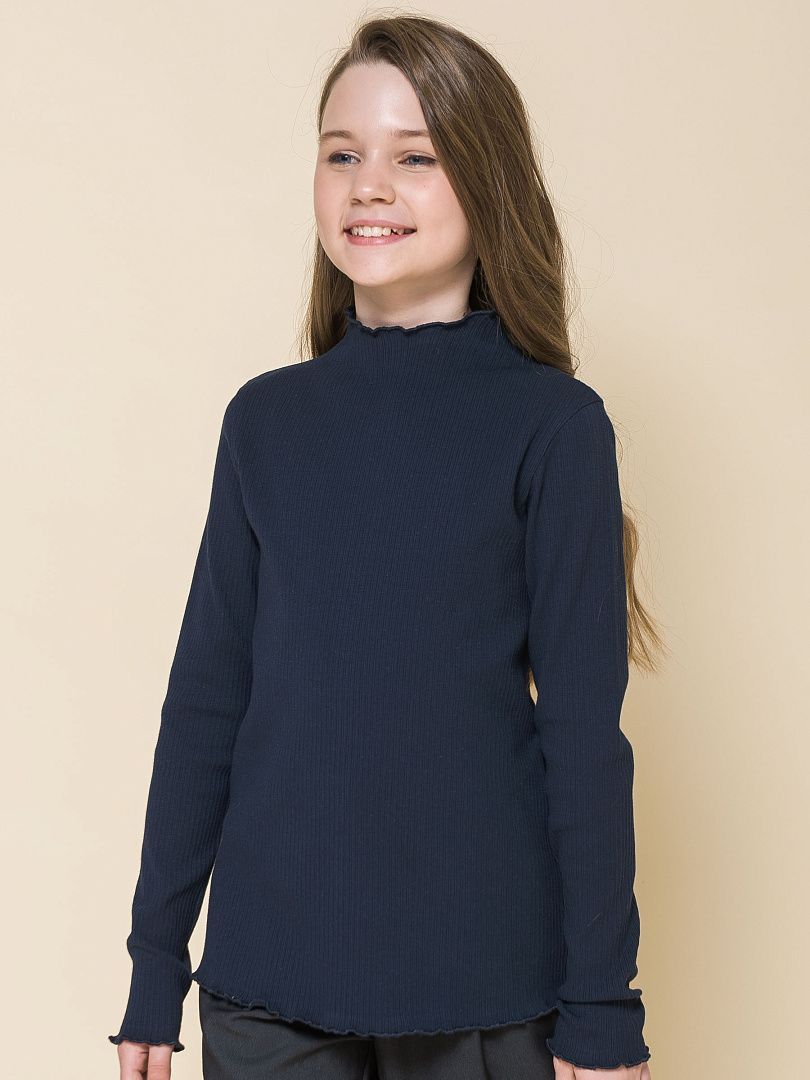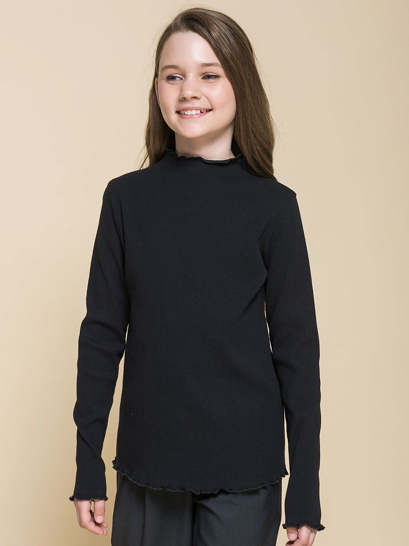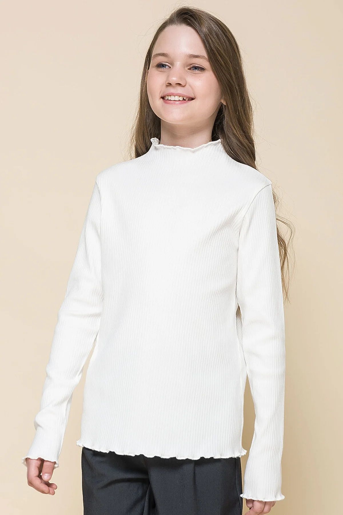 Состав: 95%хлопок 5%эластан Водолазка из модной ткани в рубчик для девочки. В составе ткани 95% хлопка — изделие мягкое, тактильно приятное и комфортное для кожи ребенка. Эластан помогает сохранять форму даже после частных стирок. Модель лаконичного дизайна украшает декоративная обработка «салатный край» по горловине, низу и краям рукавов — элегантно и стильно. Модный и практичный вариант для школьной одежды: водолазка хорошо сочетается как юбками, сарафанами, так и с брюками.