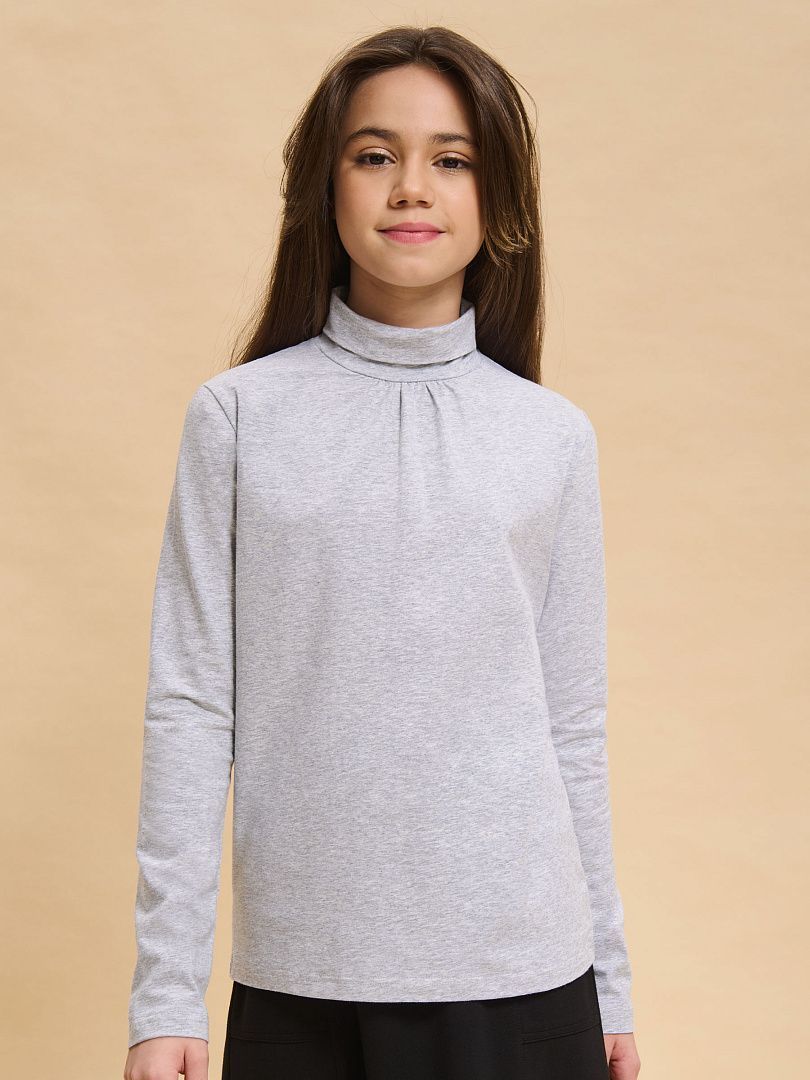Состав: 93%хлопок 7%эластан Джемпер для девочек в универсальном цвете меланж станет отличной базой на каждый день. Мягкий состав на основе хлопка с добавлением эластана гарантирует долгую службу изделия и максимальный комфорт к телу. Воротник-стойка с присборенными складками у горловины и длинный рукав надежно защищают от ветра в ненастную погоду. Слегка свободный крой позволяет надеть вниз нательную майку или топ. Джемпер подходит к строгим деловым образам и лукам в стиле кэжуал.