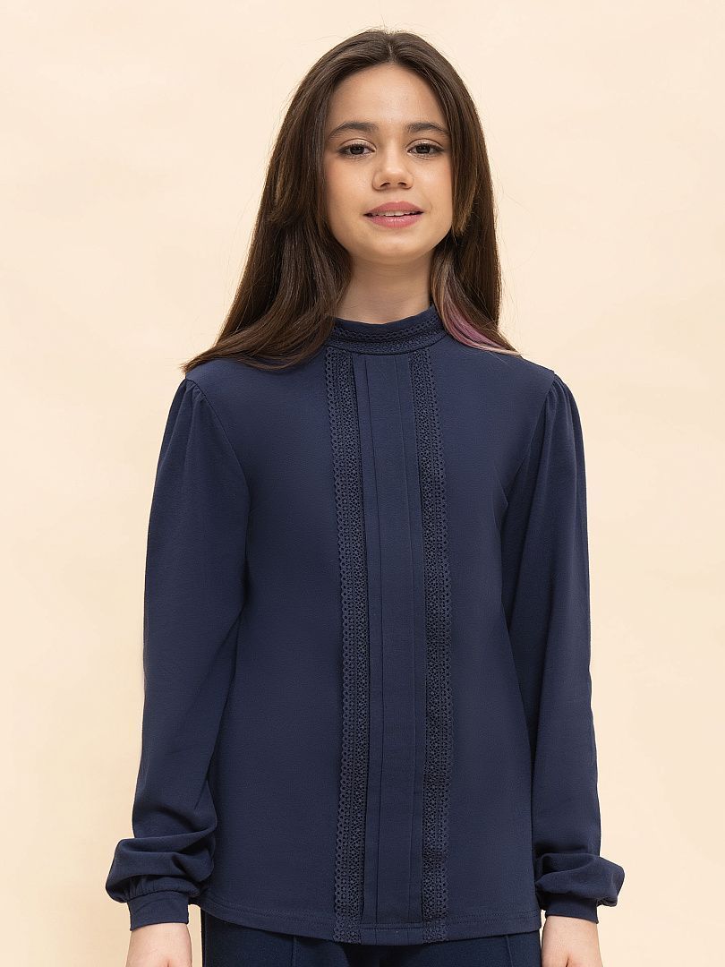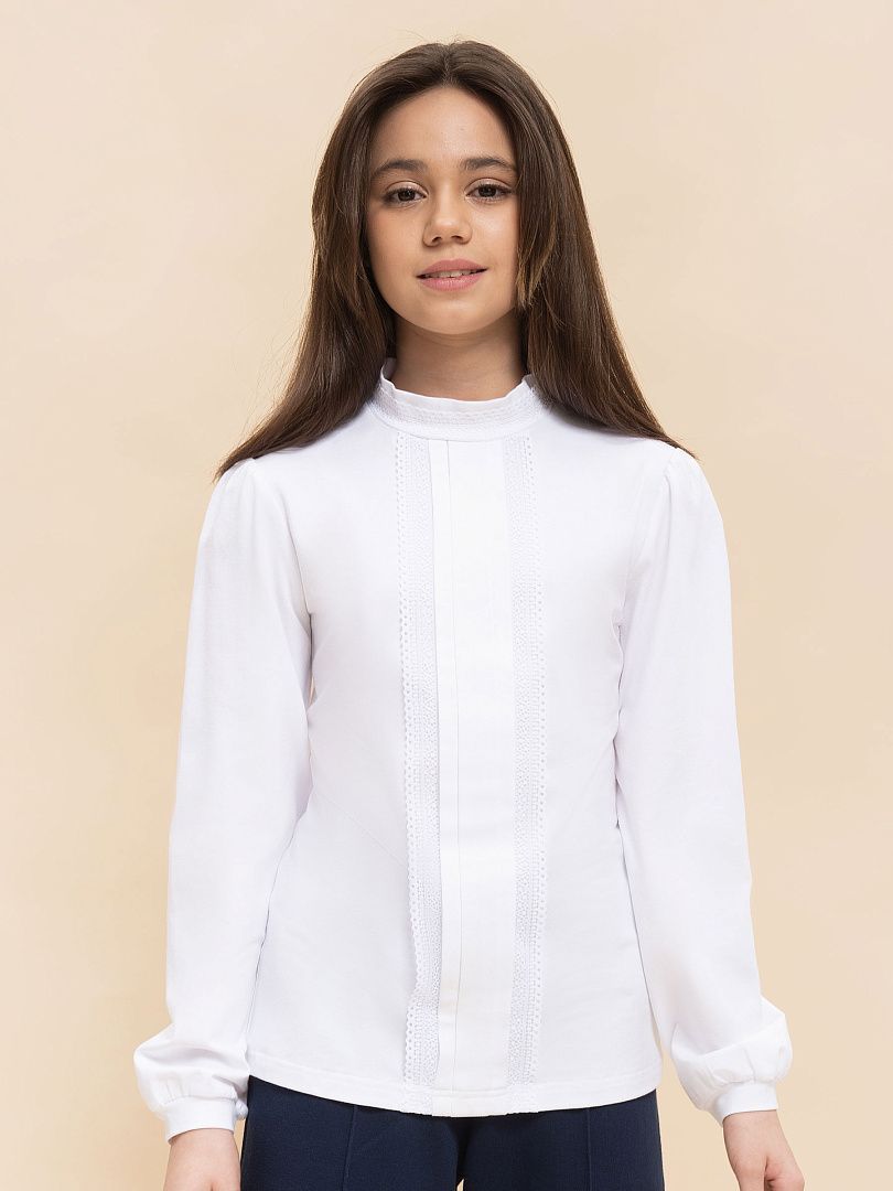 Состав: 93%хлопок 7%эластан, вставка: 90%полиамид 10%эластан Ищете стильную и удобную блузку для школы, которая сочетает в себе комфорт и элегантность? Эта модель из мягкого эластичного хлопкового трикотажа — отличный выбор для вашей девочки. Наклонные кружевные вставки на плечах и длинные облегающие рукава из нежного эластичного кружева придают блузке изящный и современный вид, при этом кружево мягкое и не раздражает кожу, поэтому ребёнку будет удобно в блузке целый деньВоротник выполнен в стиле классической рубашки с цельной стойкой и аккуратными заострёнными концами из основного материала, что делает образ опрятным и подходит под школьные требования к форме. Для удобства надевания на спинке сделан небольшой аккуратный разрез, а застёжка на две пуговицы помогает легко надевать блузку через голову.Блузка отлично сочетается с юбками, брюками и сарафанами, подходит как для ежедневных занятий в школе, так и для торжественных мероприятий. Материал легко стирается и быстро сохнет, что позволяет экономить время на уходе и сохранять свежий вид даже после многократных стирок.Выбирая эту блузку, вы обеспечиваете своей дочери комфорт, удобство и стильный внешний вид — всё, что нужно для успешного и уверенного школьного дня! Используйте таблицу размеров на фотографии, чтобы выбрать подходящий размер. Обратите внимание, что цвет товара на экране вашего устройства может отличаться от реального.