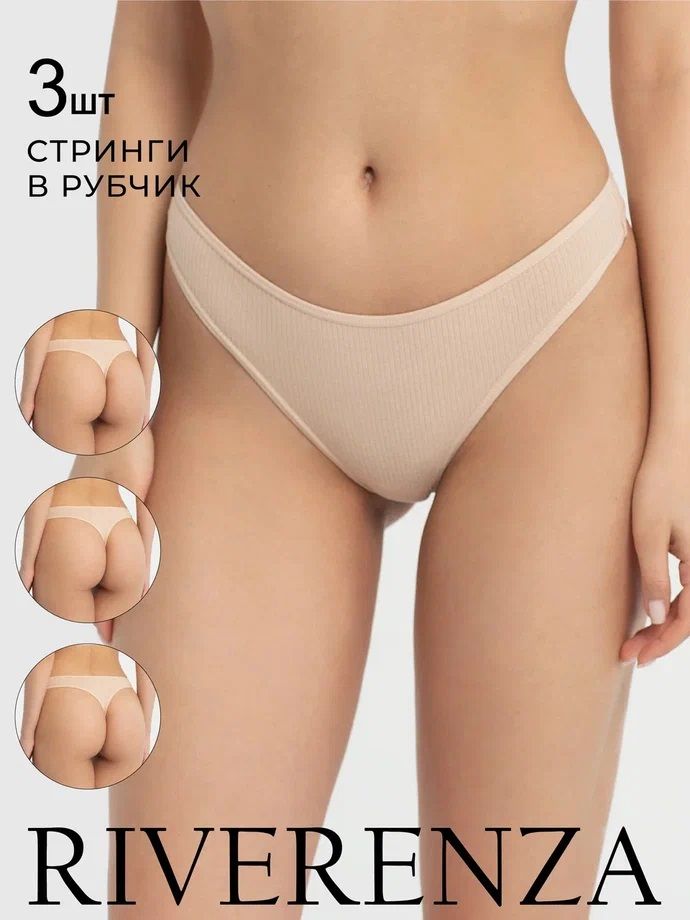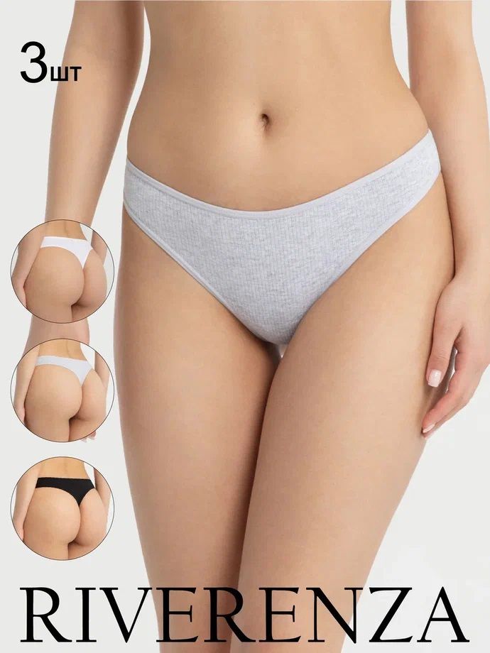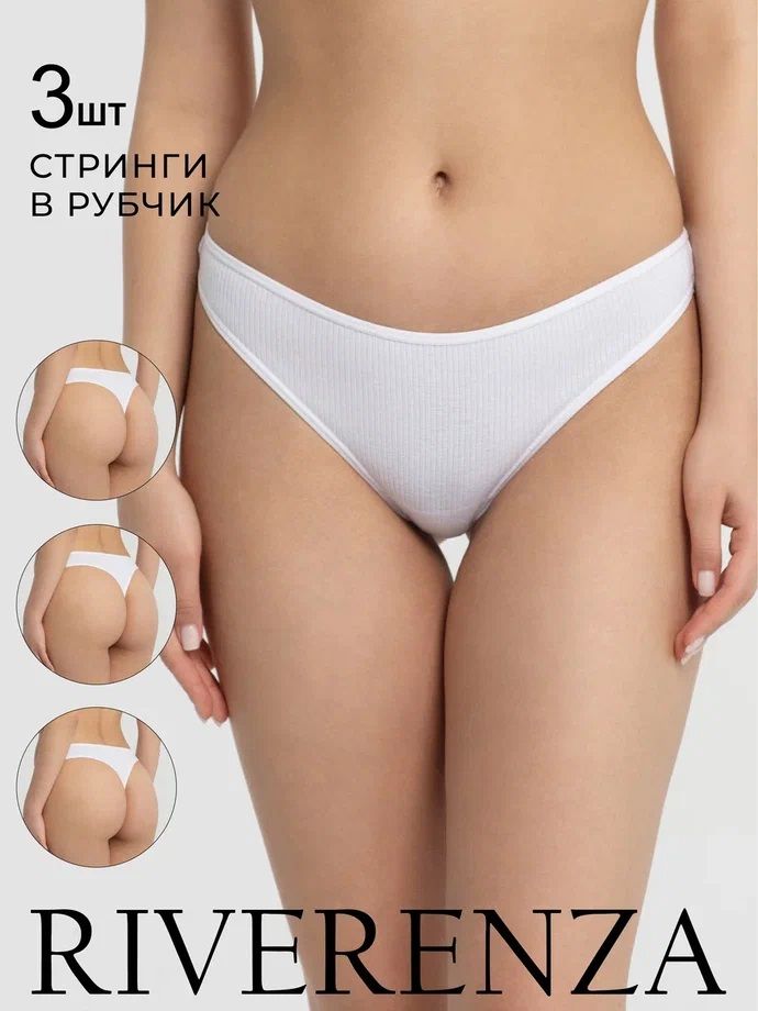 Состав: 95% хлопок, 5% эластан. Хлопковые трусы стринги в рубчик средней посадки. Набор 3шт.