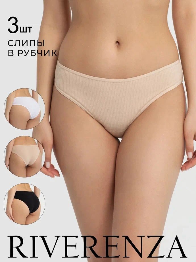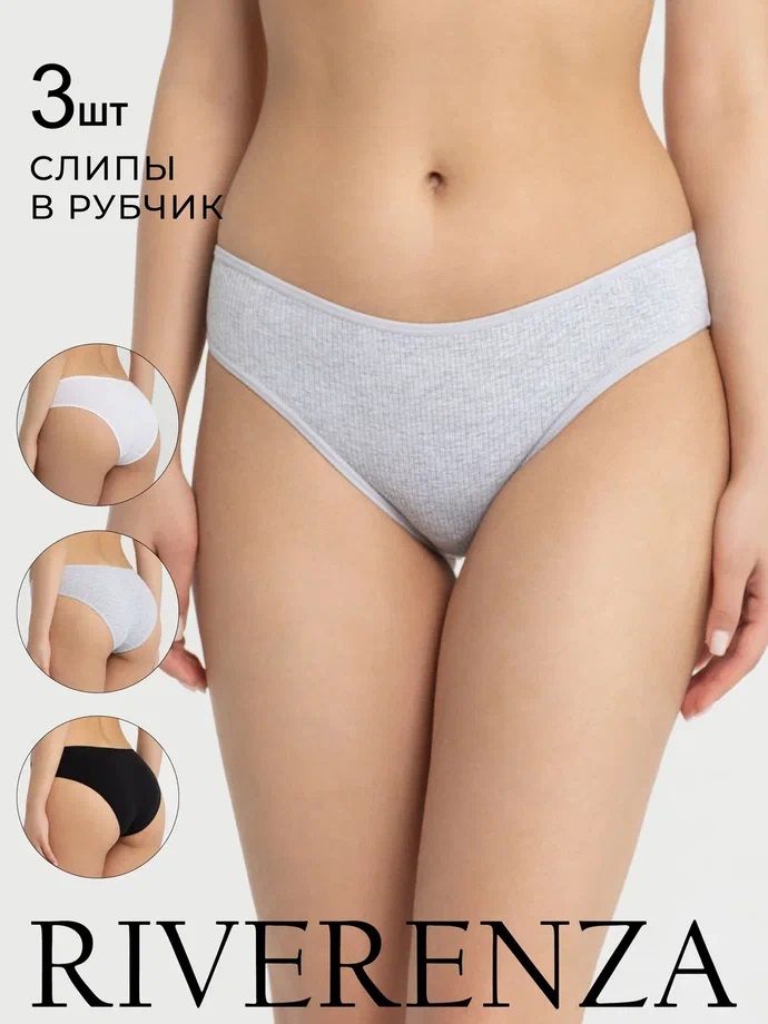 Состав: 95% хлопок, 5% эластан.Хлопковые трусы слипы в рубчик средней посадки. Набор 3шт.