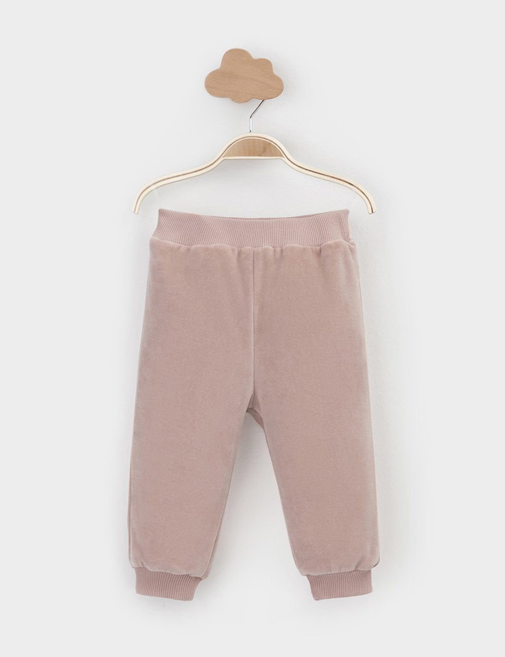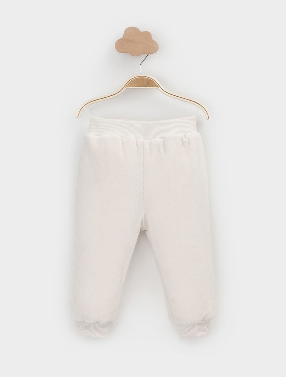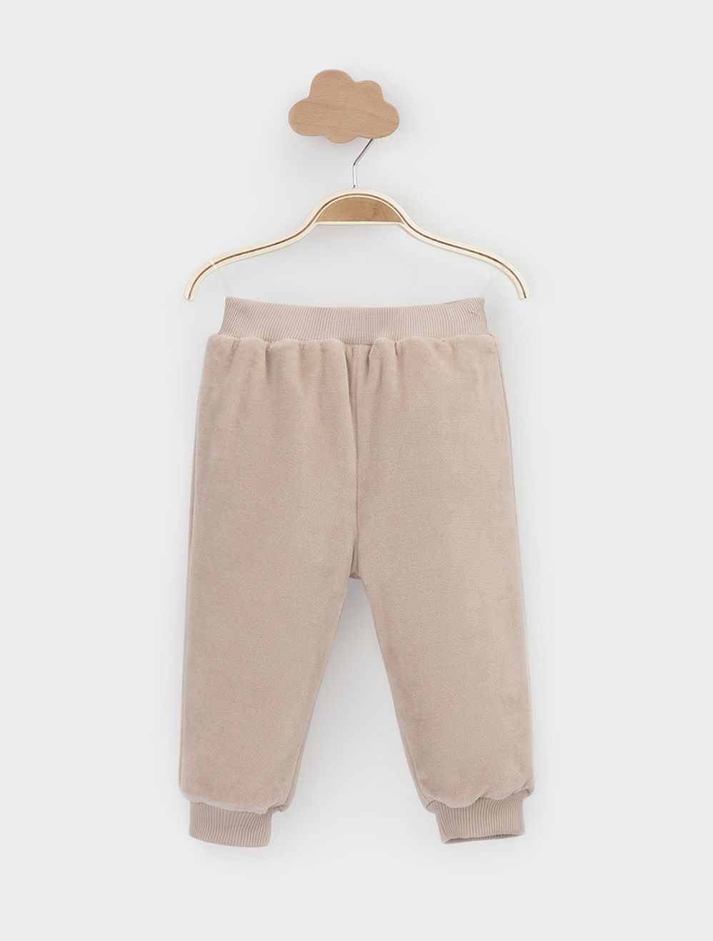Состав: верх: 80% хлопок, 20% полиэстер; подклад: 100% хлопок; утеплитель: 100% полиэстер. Тёплые брюки из велюра для новорождённых. Внутри синтепон и подклад из натурального хлопка. Изделие имеет эластичный пояс и мягкие манжеты. Все трикотажные полотна производятся в соответствии с нормами Швейцарского сертификата ЭкоТекс.