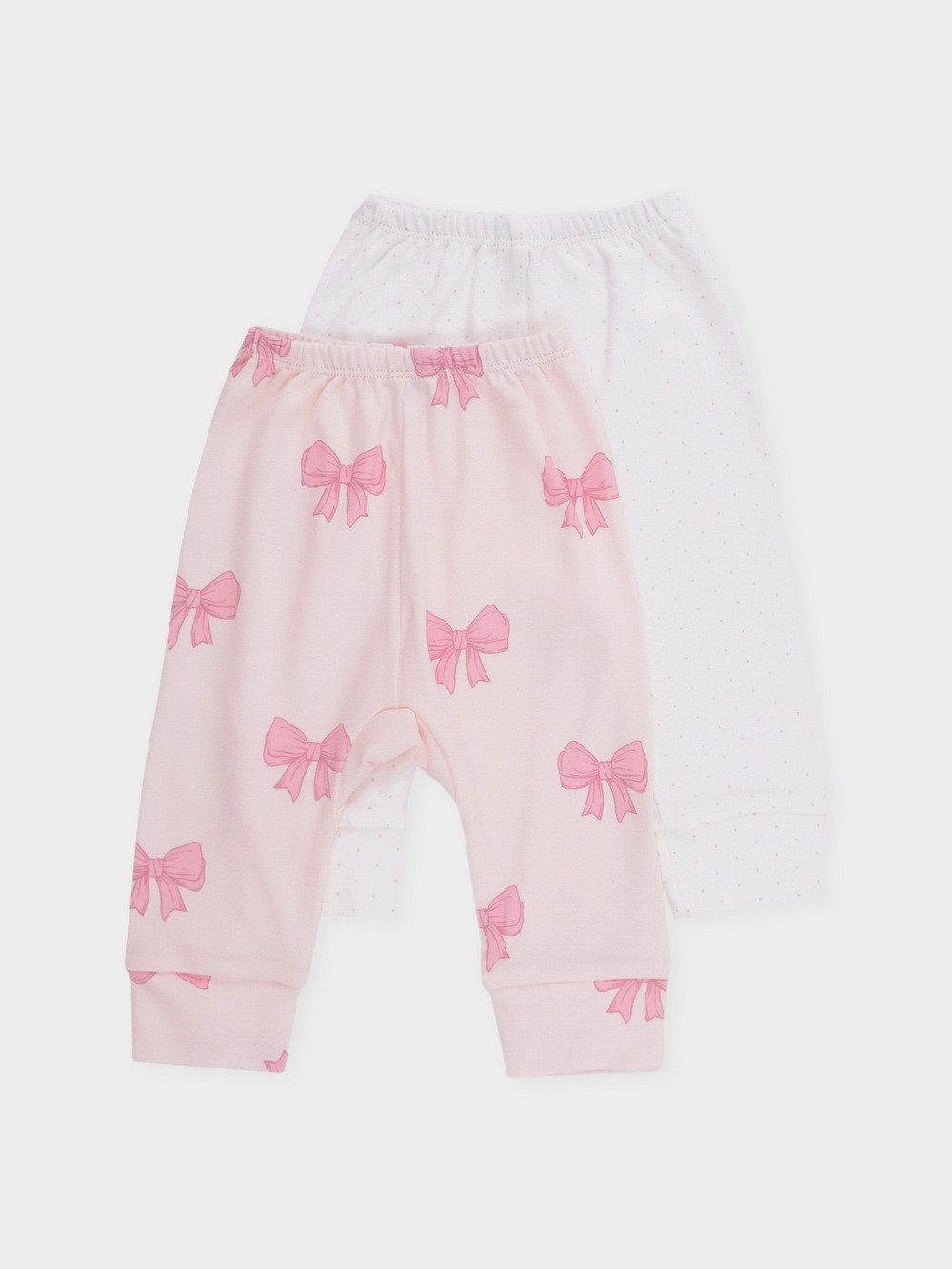 Состав: 100% хлопок. Брюки для новорождённых из мягкого эластичного трикотажа интерлок, произведённого из натурального хлопка. В упаковке 2 штуки. Пояс на резинке. Оригинальная набивка выполнена из стойких гипоаллергенных текстильных красителей. Все трикотажные полотна производятся в соответствии с нормами Швейцарского сертификата ЭкоТекс.