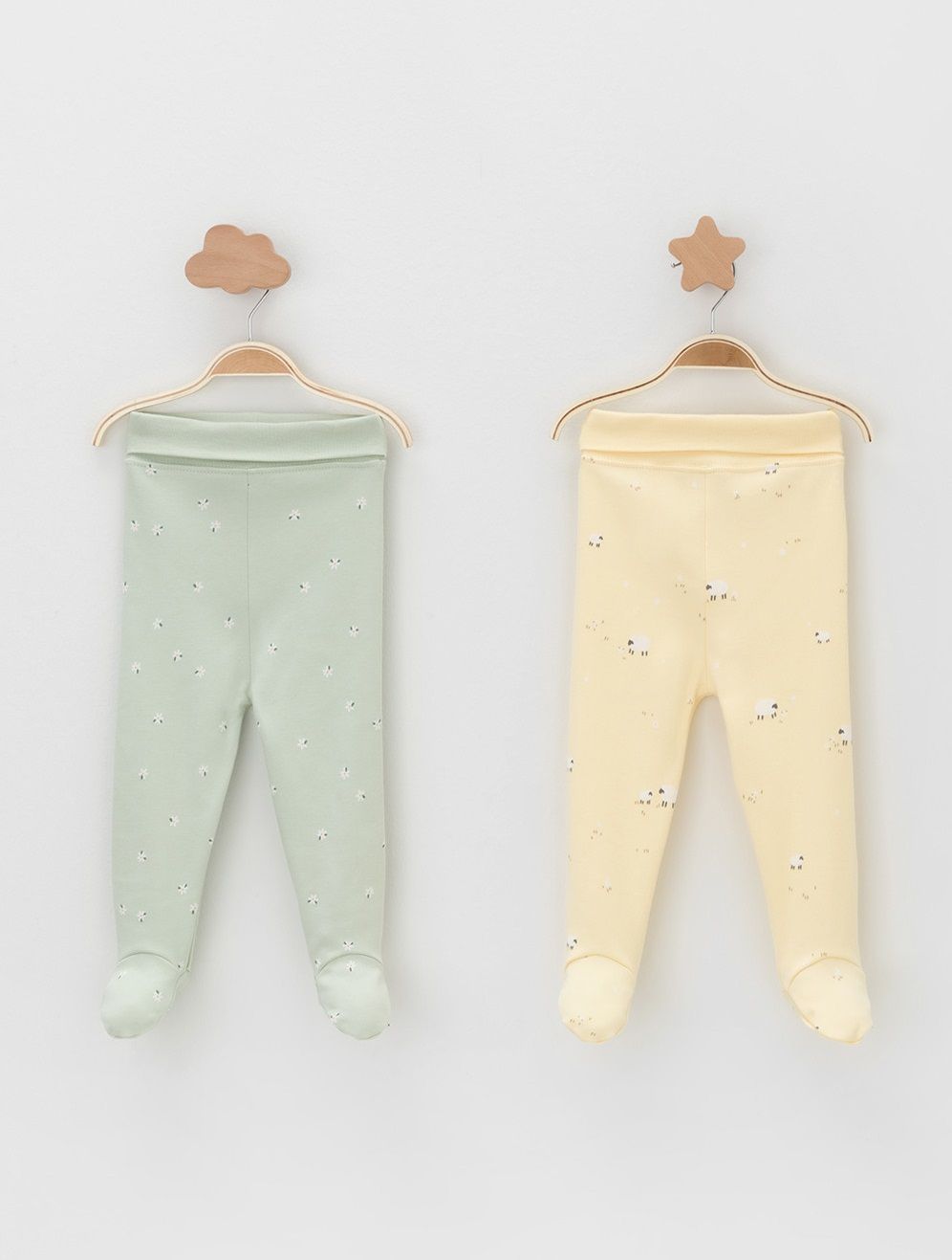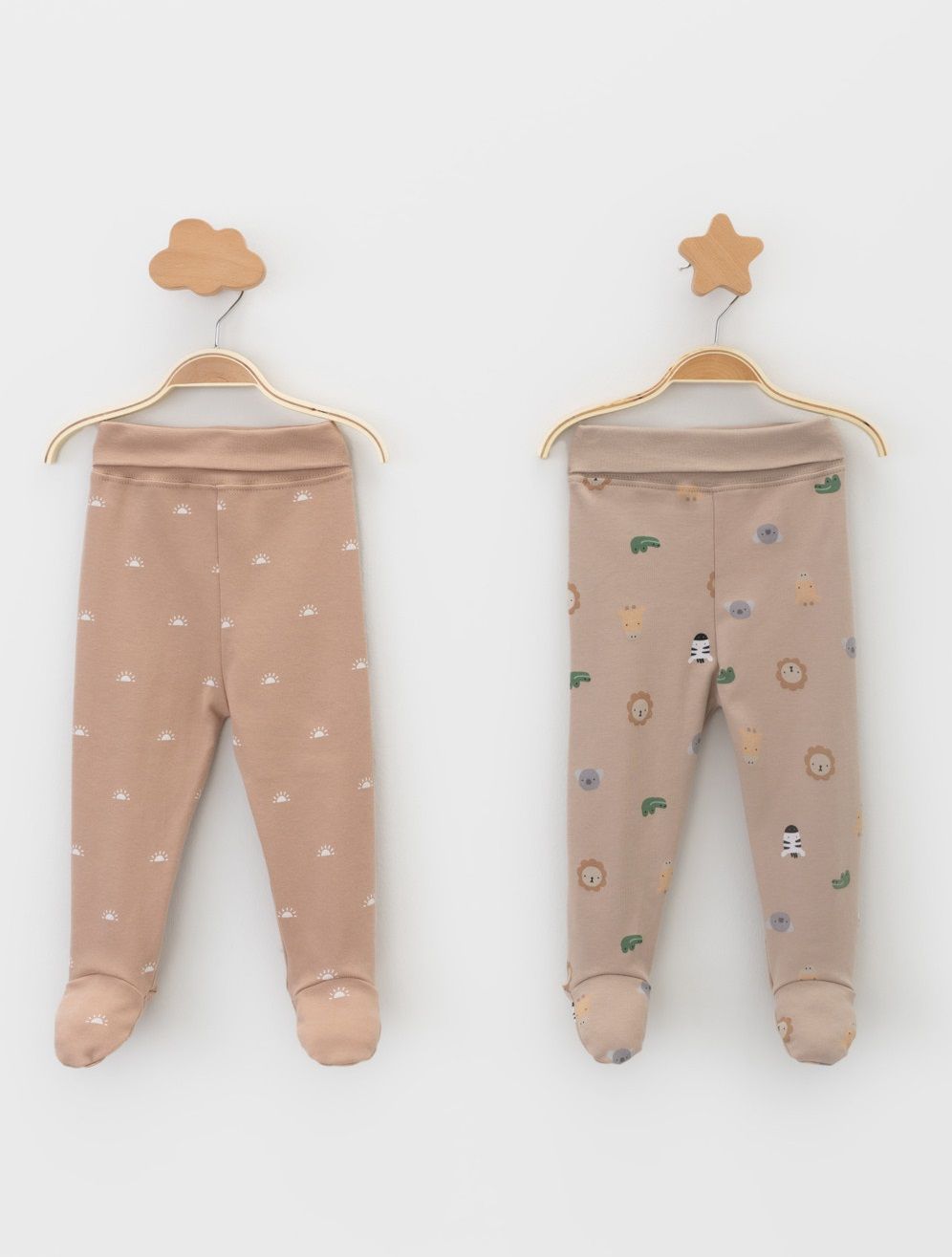 Состав: 100% хлопок. Брюки для новорождённых из мягкого эластичного трикотажа, произведённого из натурального хлопка. В упаковке 2 штуки. Пояс с отворотом на резинке. Все трикотажные полотна производятся в соответствии с нормами Швейцарского сертификата ЭкоТекс.