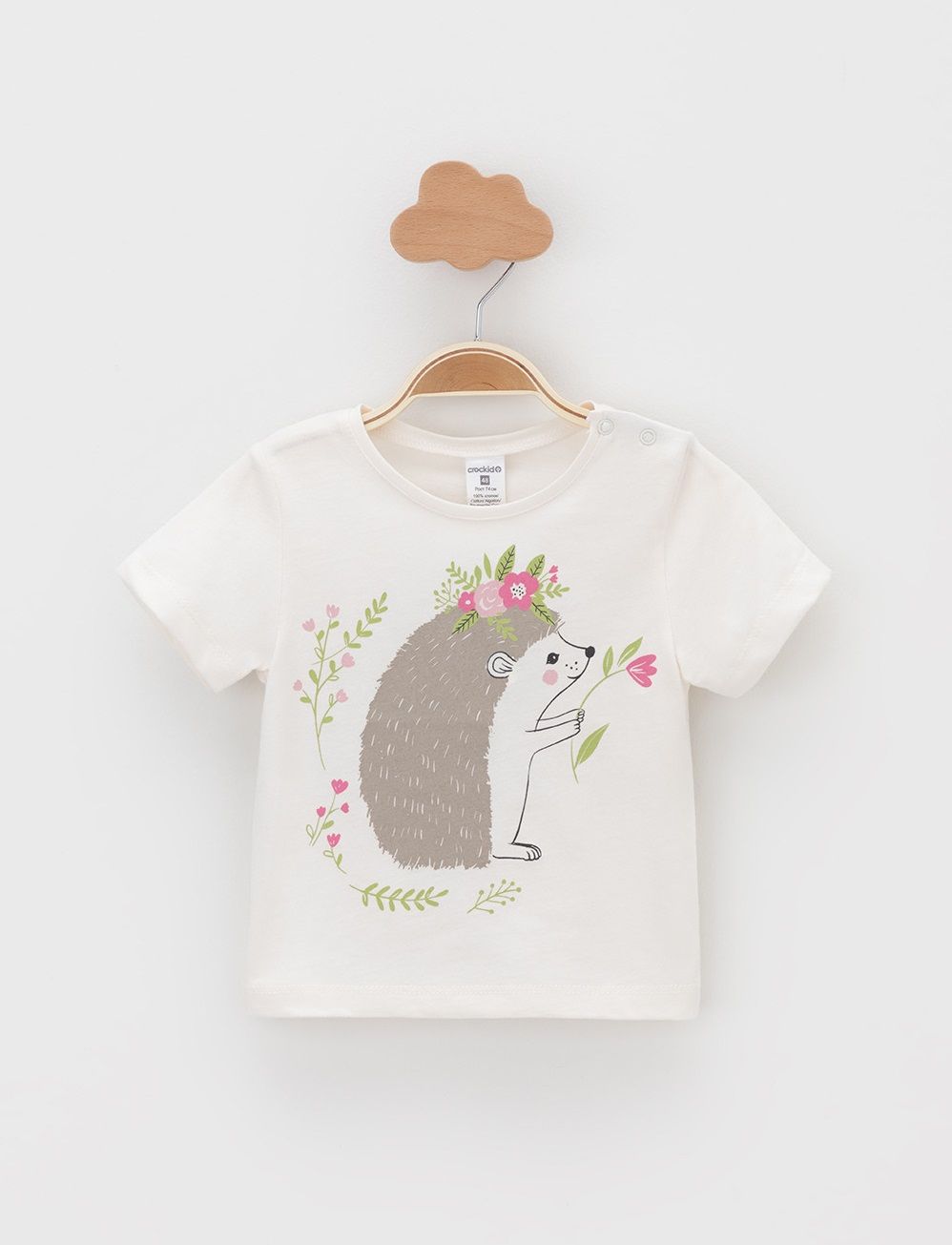 Состав: 100% хлопок. Футболка для девочки из высококачественного трикотажа супрем, произведённого из натурального хлопка. Для удобства на плече застёжка на кнопки. Все трикотажные полотна производятся в соответствии с нормами Швейцарского сертификата ЭкоТекс.