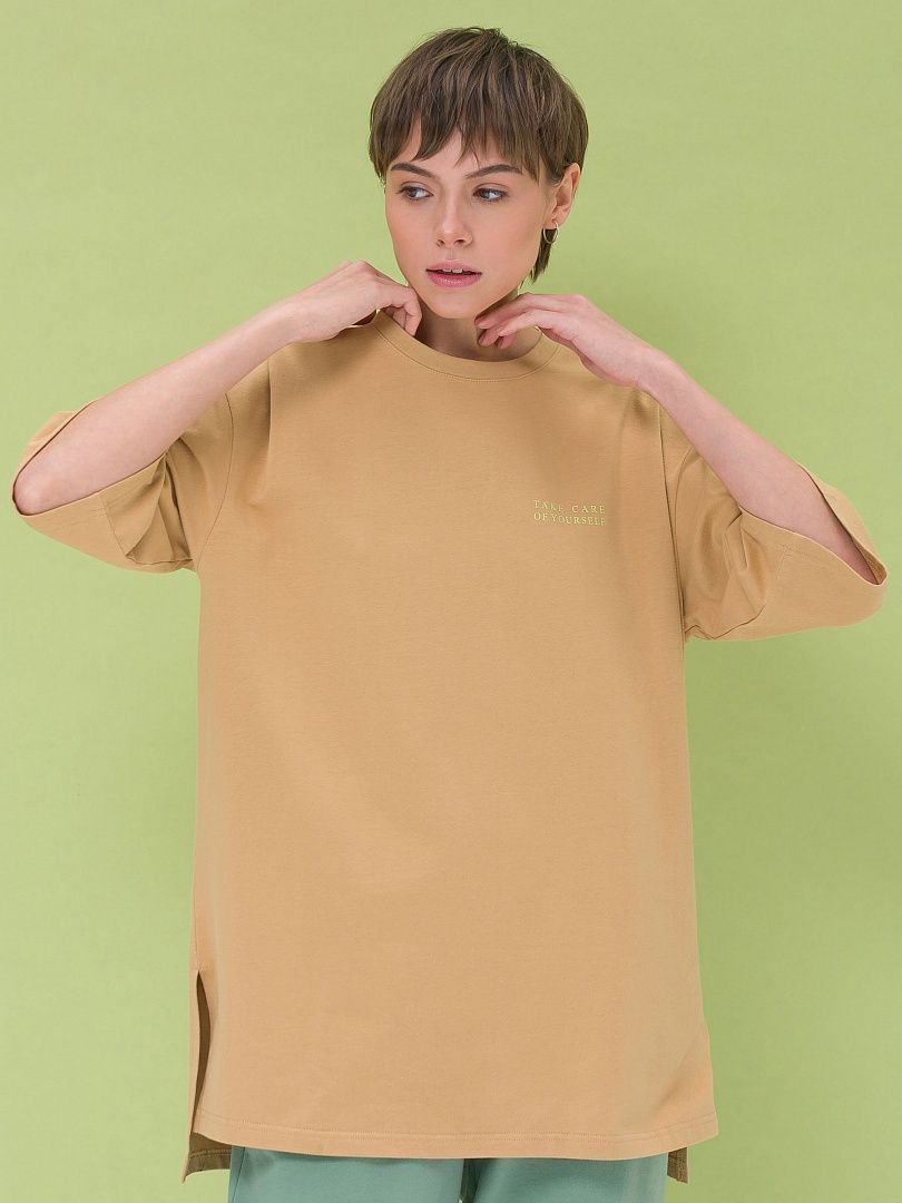 Состав: 95%хлопок 5%эластан Женская футболка оверсайз с удлиненными прямыми рукавами. Натуральный хлопок и 5% эластана в составе – тело дышит, ткань меньше мнется и дольше сохраняет аккуратный внешний вид. Перепад длины по низу, разрезы по бокам для максимальной свободы движений и ощущения легкости. Крупный текстовый принт на спинке развернут по вертикали – оригинальная фишка модели. Маленький принт спереди как легкий акцент на позитивное мышление. Модель идеальна на каждый день, подходит для спортивного стиля и активного отдыха.