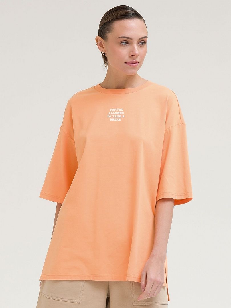 Состав: 95%хлопок 5%эластан Женская футболка оверсайз для весны и лета. Натуральный хлопок и 5% эластана в составе – тело дышит, ткань меньше мнется и дольше сохраняет аккуратный внешний вид. Перепад длины понизу, разрезы по бокам для максимальной свободы движений и ощущения легкости. Принты спереди и на спинке настраивают на позитив и лето. Модель идеальна на каждый день, подходит для спортивного стиля и активного отдыха.