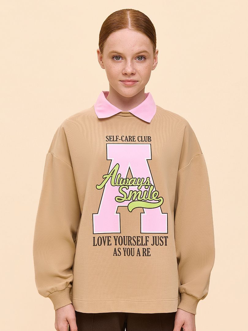 Состав: 95%хлопок 5%эластан Свитшот детский для девочки свободного силуэта со спущенным плечом. Объёмный джемпер оверсайз — отличный выбор для детского повседневного гардероба. Манжеты выполнены из эластичной рибаны (ткани в рубчик). Она не растягивается, отлично сохраняет форму, при этом ребёнку удобно надевать и снимать свитшот. Модель неприхотлива в уходе. Свитшот с принтом по переду выполнен из хлопкового футера — он мягкий, дышащий и комфортный. Эластан в составе ткани обеспечивает изделию долговечность. Принт в трендовом университетском стиле мягкий и эластичный, без проблем переносит многочисленные стирки. Надписи переводятся: «клуб любви к себе», «люби себя таким, какой ты есть», «улыбайся всегда». Фишка модели — оригинальный воротничок из рибаны. Создаётся иллюзия, что под свитшотом надето поло — модный эффект многослойности. Детский свитшот выполнен в в универсальном девичьем цвете, который легко сочетать с любыми брюками, джинсами, юбками. Свитшот с воротником подходит как для маленьких девочек, так и для девочек-подростков. Джемпер идеален для детского сада, прогулок, активного отдыха, дома. Оверсайз свитшот можно носить круглый год. Помните о правильном уходе за изделием: рекомендуется стирать при температуре не выше 30 °C, без предварительного замачивания, с изнанки. Это поможет сохранить качество и цвет свитшота на длительное время.Не забывайте о выборе правильного размера. Используйте таблицу размеров на фотографии, чтобы выбрать подходящий вариант для вашей девочки.Обратите внимание, что цвет товара на экране вашего устройства может отличаться от реального.