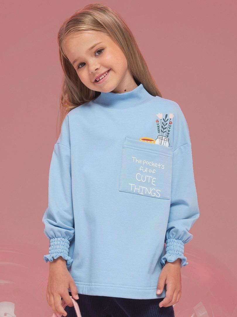 Состав: 95%хлопок 5%эластан Детский свитшот для девочки из футера с начесом. Джемпер актуального свободного кроя со спущенным плечом подарит ребёнку комфорт и не будет стеснять его движений. Оверсайз-свитшот дополнен воротником-стойкой, который обеспечивает дополнительную защиту шеи от холода и ветра. Воротник выполнен из эластичной рибаны (ткань в рубчик) — он хорошо тянется, ребёнку удобно надевать и снимать свитшот, при этом воротник прекрасно сохраняет форму. Низ рукавов собран на тонкую резинку в несколько рядов, что придаёт модели элегантности и женственности. Слева на груди накладной карман для мелочей. За толстовкой легко ухаживать. В составе ткани преобладает высококачественный хлопок — свитшот приятен на ощупь и безупречно пропускает воздух, давая коже ребёнка дышать. Благодаря эластану изделие сохраняет отличную форму в течение долгого времени. Свитшот с принтом по переду (принт на кармане + «выглядывает» из кармана). Милый принт с уютным настроением изображает чашку с какао и вазу с цветами, надпись переводится: «карман, полный милых штук». Принты мягкие и эластичные — великолепно переносят частые стирки. Джемпер выполнен в красивом голубом цвете, его легко сочетать с любыми брюками, легинсами, джинсами. В линейке представлены следующие размеры: 2 (92); 3 (98); 4 (104); 5 (110); 6 (116); 7 (122); 8 (128); 9 (134); 10 (140); 11 (146). Свитшот с начёсом подходит девочкам дошкольного возраста, младшим школьницам и девочкам-подросткам. Он идеален для детского сада, прогулок, активного отдыха, его можно носить дома. Свитшот детский подходит для круглогодичного применения: летом, осенью, зимой, весной и демисезон. Это замечательный подарок дочери, внучке или сестре на День рождения и любой другой праздник.