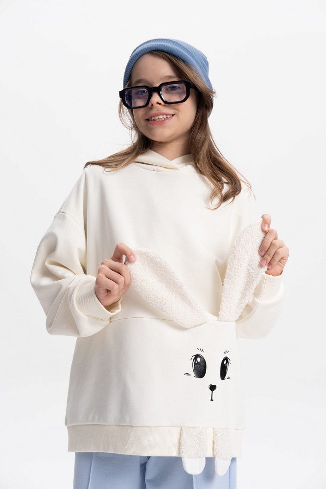 Состав: 87%хлопок 13%полиэстер, вставка: 100%полиэстер Свитшот с принтом зайчика: ушки и лапки из меха, подходит для девочки подростка. Модный джемпер из высококачественного хлопкового футера можно носить круглый год весной, летом, осенью и зимой. Кофта с капюшоном подойдет для повседневной носки на занятия, в школу, в сад и на прогулку.Идеально для подарка на любой праздник.