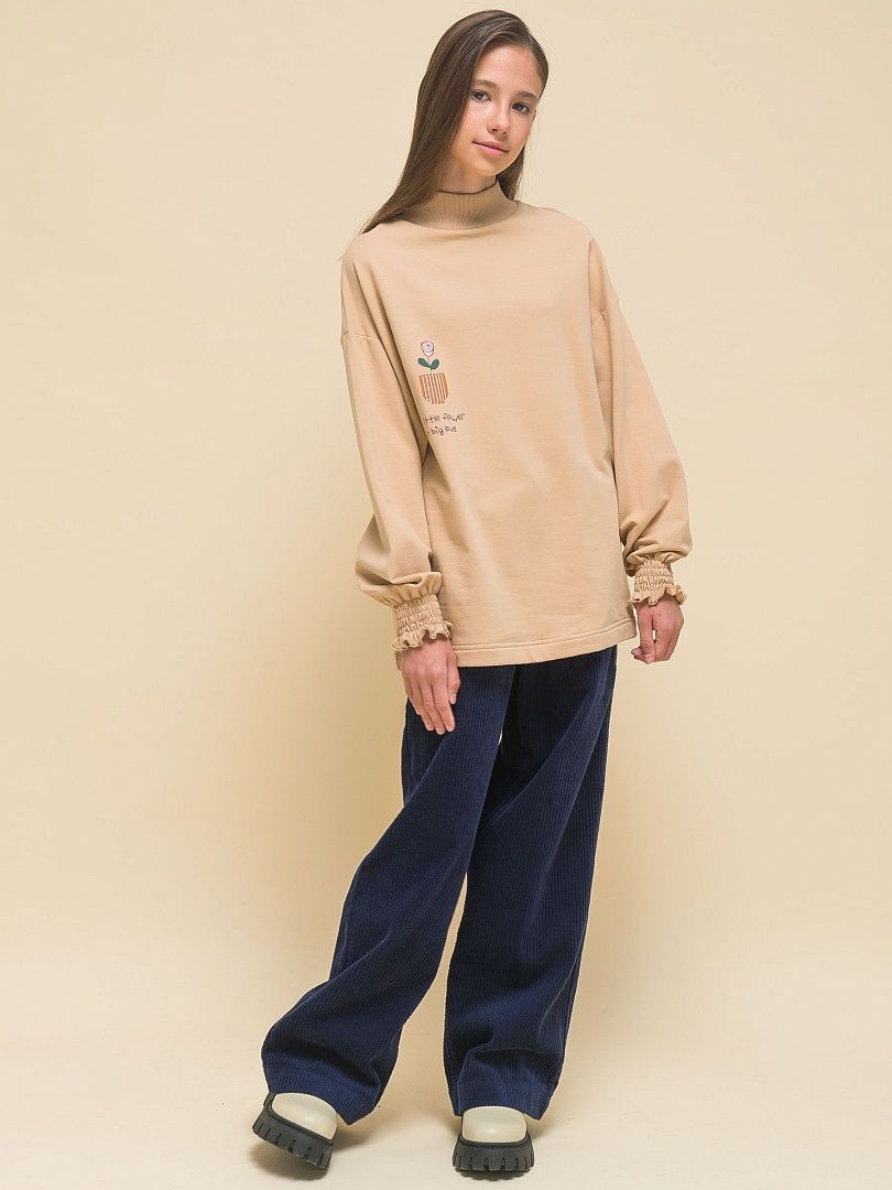 Состав: 95%хлопок 5%эластан Детский свитшот для девочки из футера с начесом. Толстовка трендового свободного кроя со спущенным плечом подарит ребёнку комфорт и свободу движений. Оверсайз-свитшот дополнен воротником-стойкой, который обеспечивает дополнительную защиту шеи от холода и ветра. Воротник выполнен из эластичной рибаны (ткань в рубчик) — он прекрасно тянется, ребёнку удобно надевать и снимать свитшот, при этом воротник отлично сохраняет форму. Низ рукавов собран на тонкую резинку в несколько рядов, что придаёт изделию элегантности и женственности. Джемпер неприхотлив в уходе. В составе ткани преобладает высококачественный хлопок — свитшот мягкий и великолепно пропускает воздух — кожа ребёнка дышит. Благодаря эластану изделие сохраняет первоначальную форму в течение долгого времени. Свитшот с принтом по переду и спинке. Милый принт с уютным настроением изображает вазочки с цветами, надпись переводится: «рецепт уюта: маленькие цветочки + большая любовь». Принты эластичные и прочные — без проблем переносят многочисленные стирки. Джемпер выполнен в нежном бежевом цвете, его просто комбинировать с любыми брюками, легинсами, джинсами. Размерная линейка: 2 (92); 3 (98); 4 (104); 5 (110); 6 (116); 7 (122); 8 (128); 9 (134); 10 (140); 11 (146). Свитшот с начёсом подходит девочкам дошкольного возраста, младшим школьницам и девочкам-подросткам. Его можно носить в детский сад, на прогулки, во время отдыха, а также дома. Свитшот детский идеален для круглогодичного применения: летом, осенью, зимой, весной и демисезон. Это стильный и практичный подарок дочери, внучке или сестре на Новый год и любой другой праздник.
